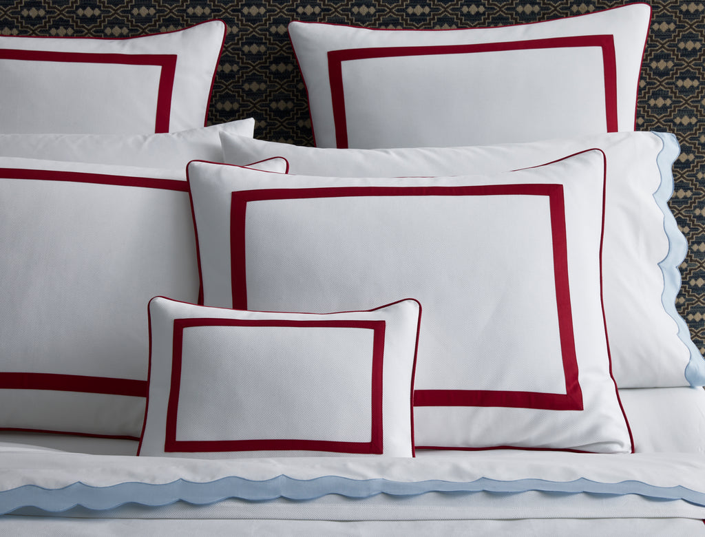 For nearly 100 years and three generations, Matouk has handcrafted luxury linens from the world’s finest materials. Their dedicated artisans in Fall River, Massachusetts are committed to creating the highest quality, most-loved bed, bath, and table linens for your home. The bold lines of The Louise Piqué Collection are extended to the lightweight coverlet and shams, crafted in the brand’s newest 100% cotton piqué. A triangular weave is accented with sateen appliqué and a matching corded edge.