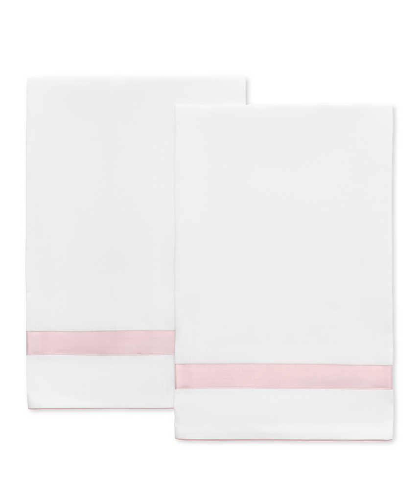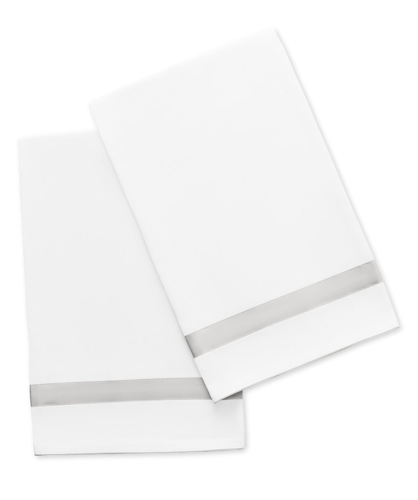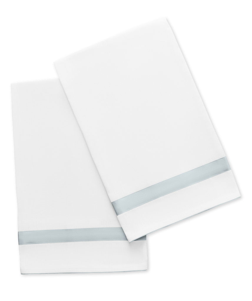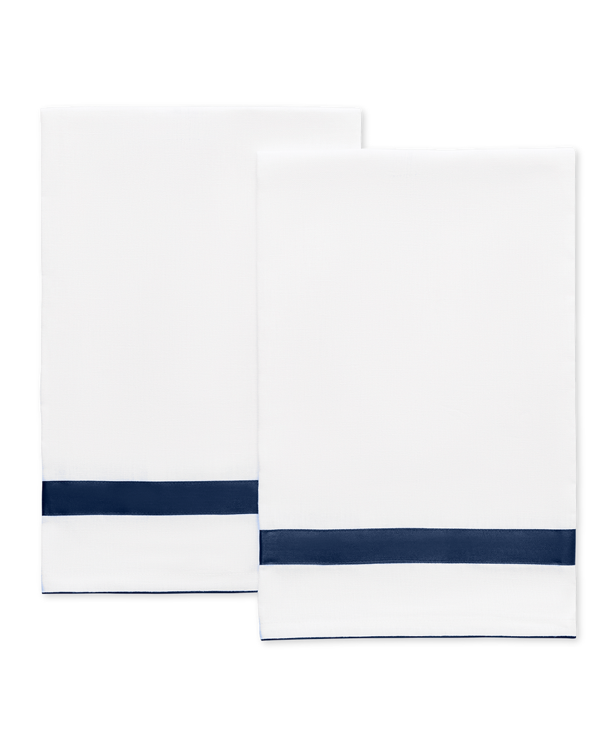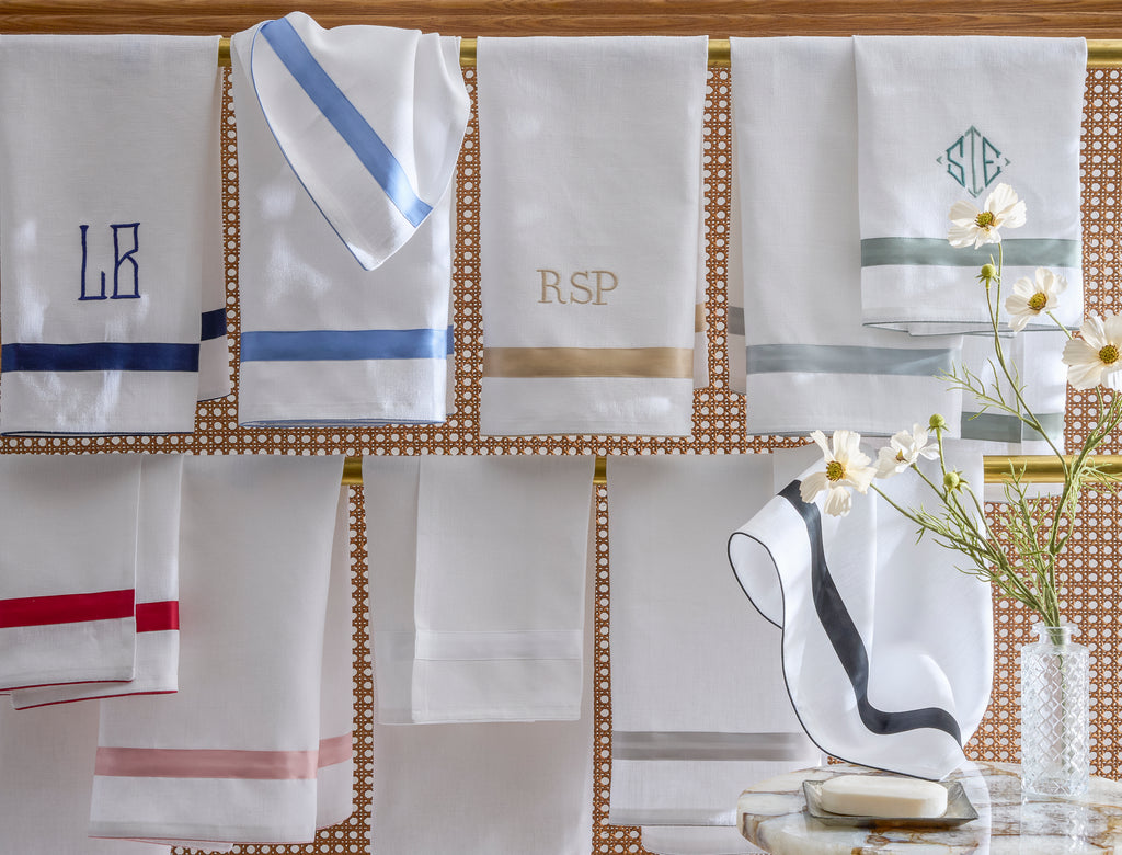 The Lowell Guest Towel Set brings a tailored elegance to the bath, reimagining the beloved Lowell design in crisp Valentina linen framed with refined Nocturne sateen trim. The result is a polished, understated accent that enhances both everyday rituals and moments of hosting.