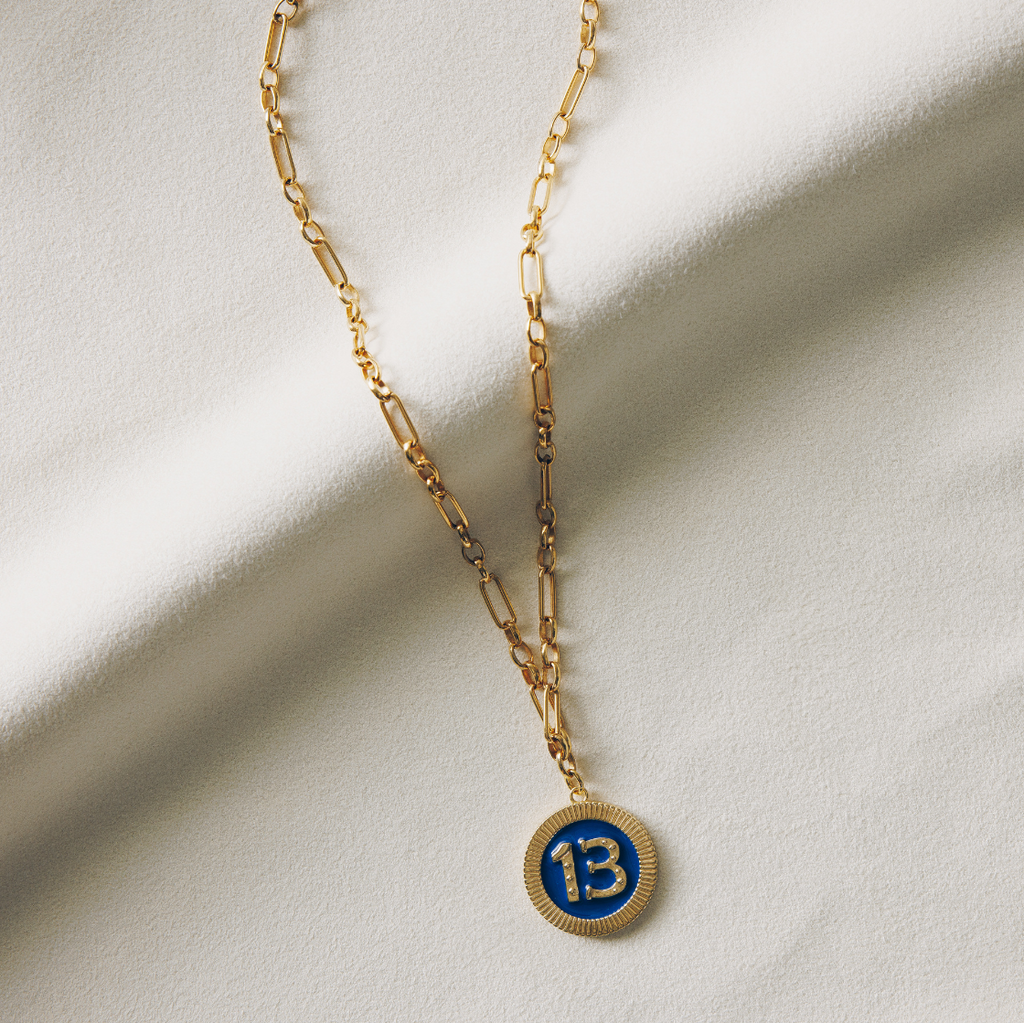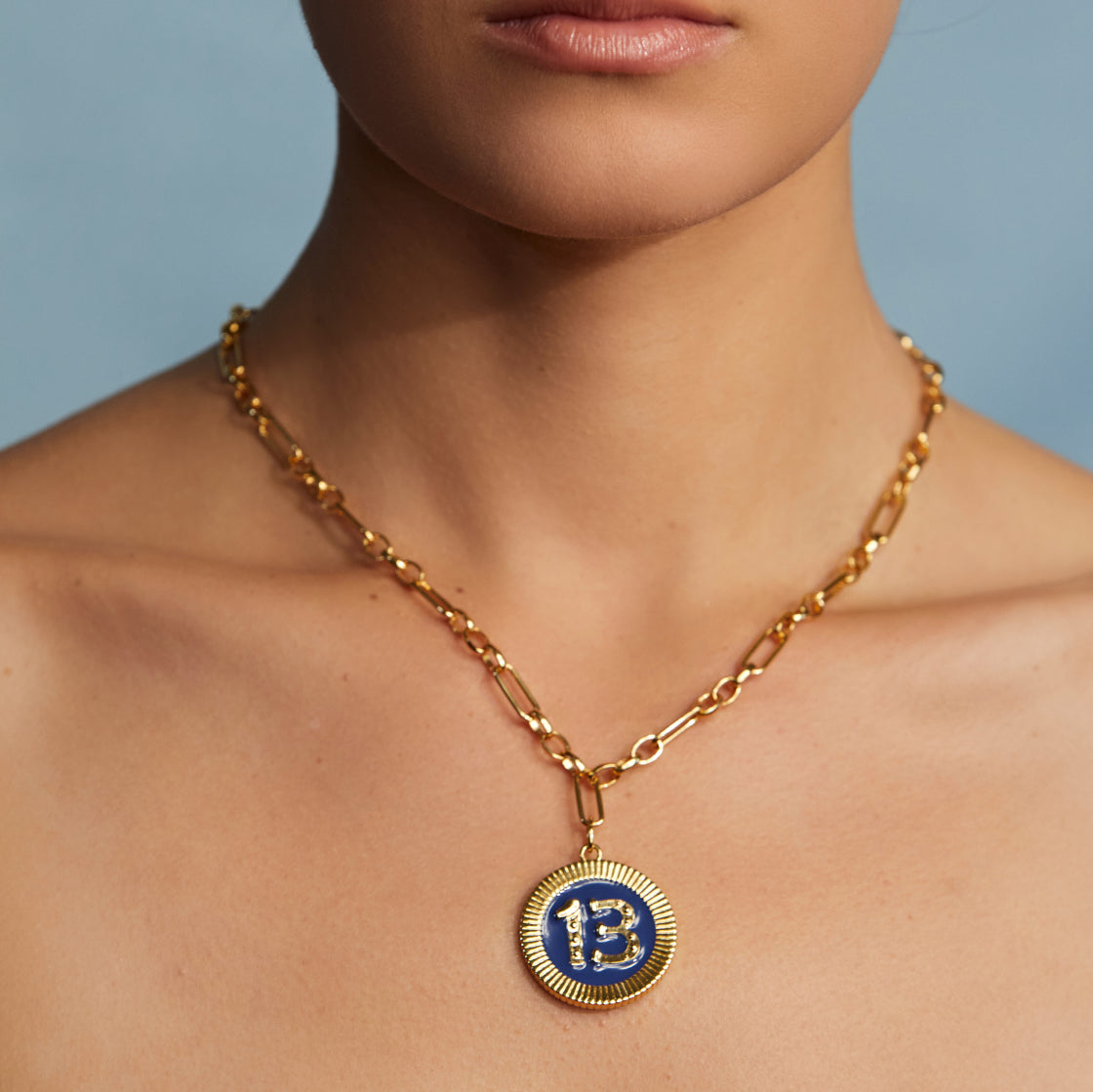 When you think HART, think of joyful jewelry. Created by Charlestonian Hart Hagerty in 2016, each piece of HART is a talisman to positivity, creating a soul-boosting experience for the modern, mindful woman. Fortune favors the brave with the Lucky 13 Navy Poker Chip Necklace. Inspired by a vintage poker chip Hart discovered in the south of France, the often superstitious number 13 sits on a lucky token. It’s a way to take luck into your own hands, superstition be damned. The three is designed as stacked horseshoes turned on their sides.