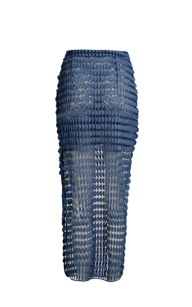From her atelier in Barranquilla, Colombia, Francesca Miranda combines the diverse, indigenous aesthetic of her surroundings, as well as her own European roots, to produce sumptuous womenswear, bridal, and household objects, each bearing the essential spirit of artistry and craftsmanship. The Lunar Skirt stands out with its sheer embroidered netting and high side slit, merging bold craftsmanship with a sleek, modern silhouette. Designed to bring texture and movement to warm-weather dressing, it’s a statement in effortless sophistication.