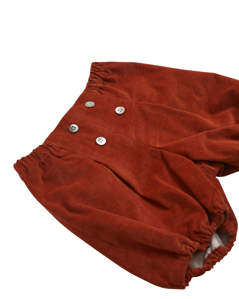 The Magpie Bloomer in Orange Babycord is a refined seasonal staple, combining warmth, comfort, and timeless design. Crafted from soft orange baby corduroy, it features an elasticated waist and a delicate mother-of-pearl button for effortless wear. Easy to pair with Amaia’s baby shirts and classic shoes, this versatile piece brings understated elegance to your little one’s winter wardrobe.