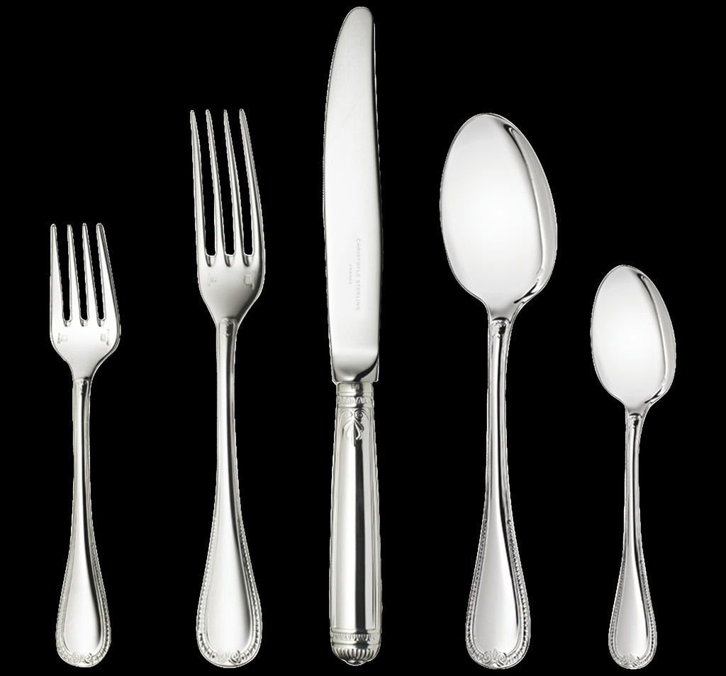 Founded in Paris in 1830, Christofle embodies the pinnacle of French artistry in silverware and tableware, renowned for its pioneering craftsmanship and timeless elegance. The Malmaison Sterling Silver Individual Place Setting, Set of 5, is among the maison’s most historic designs. Inspired by the Château de Malmaison, the favored residence of Napoleon Bonaparte and Empress Joséphine, the collection’s palm and lotus leaf frieze reflects the Empire style with symmetry and grandeur rooted in Antiquity.