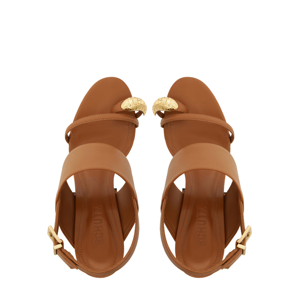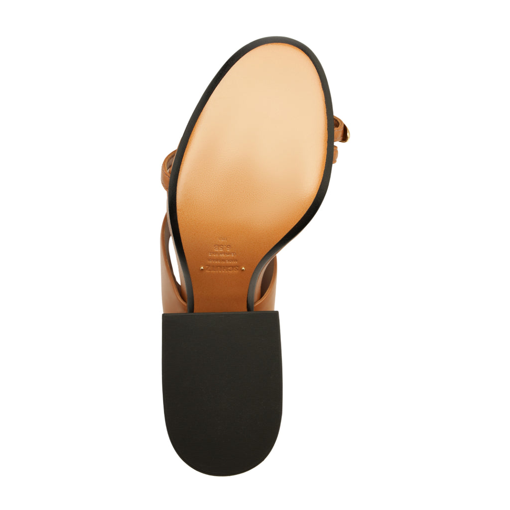 The Mandy Leather Sandal in Miele brings a sculptural, modern edge to warm-weather dressing with its smooth leather bands and unexpected gold toe-ring detail. Set on a grounded block heel, it offers height with stability—an elevated staple that pairs effortlessly with everything from denim cutoffs to slip dresses.