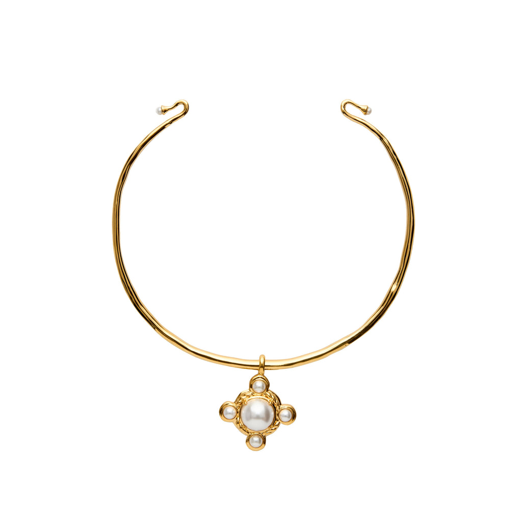 18K gold vermeil. Freshwater pearl tips. Sculptural collar silhouette. Compatible with the Pearl Pendant and Porto Pendant.