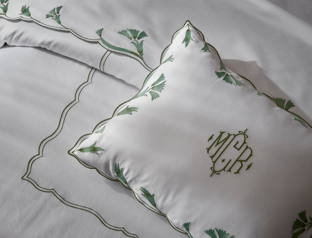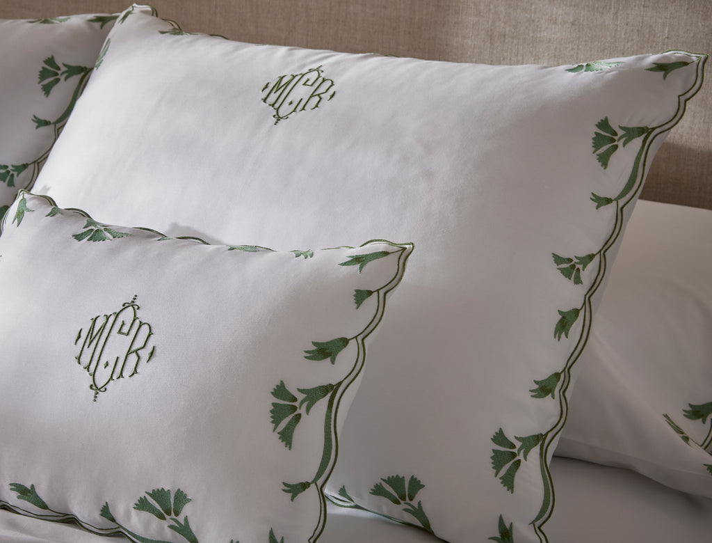 The Marcella Sham brings a refined, luminous elegance to the bed, showcasing elongated scalloped florals embroidered on Nocturne sateen. Subtle tonal shifts lend depth and dimension to the motif, while the trim drapes seamlessly without visible stitching—creating a soft, sophisticated finish. Pair with the coordinating Nocturne Fitted Sheet for a cohesive, elevated ensemble.