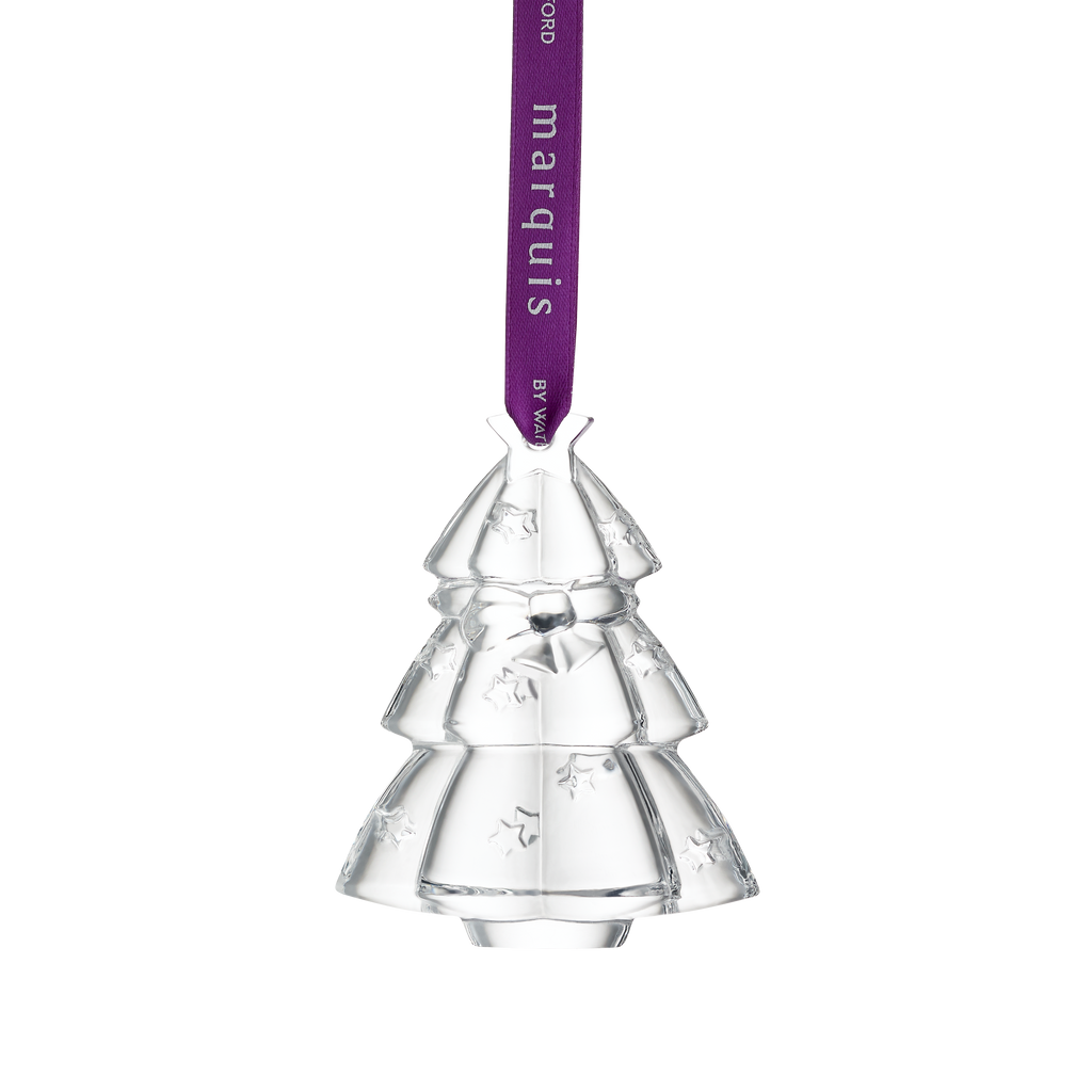 For over 200 years, Waterford has used its Irish heritage and artistry to produce hand-crafted luxury crystal. From the first sketch through the process of molding and blowing the glass to the hand-detailing and cutting, Waterford’s artisans apply a level of precision, care, and quality that has placed it among the world’s finest makers of crystal glasses, bowls, and objects for the home. The Marquis Christmas Tree Ornament is a delightful crystal decoration that embodies the lighthearted spirit of the festive season. With its simple, bubbly design, this ornament sparkles beautifully under holiday lights, adding charm to your tree. Hung from a purple Marquis-branded ribbon and presented in a Marquis-branded box, it is a perfect addition to your festive collection.
