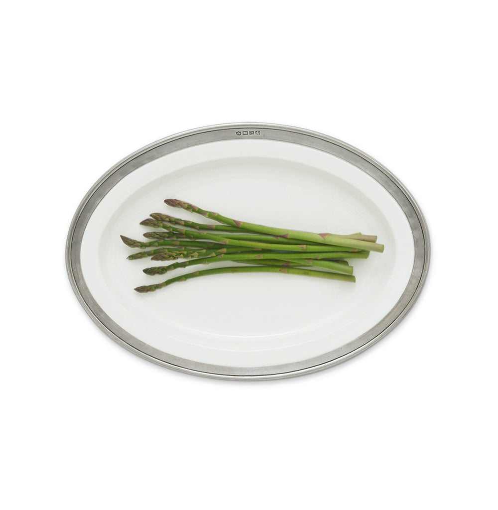 Oval platters are the efficiency experts when it comes to serving, and this Convivio Oval Serving Platter is an ideal example. A must-have for the ultimate hostess, MATCH pewter—a valuable metal composed of tin, copper, and antimony—is handmade by artisans in Northern Italy. Its classic look complements both traditional and modern place settings, and recalls decadent celebrations of the past (talk about heirloom-worthy!) Everything is made with an alloy that is food-safe, lead-free, FDA-approved, and requires very little care—and each piece is marked with the manufacturer's signature "M." No matter what you’re serving, MATCH’s carefully considered details make the meal.