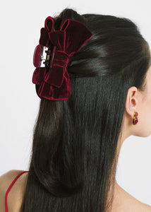“Everything has a story to tell,” says Jennifer Behr, the founder of her namesake luxury hair accessory brand that has blossomed into one of New York City’s foremost ateliers for jewelry, as well as bridal. In every crystal, pearl, and ribbon, you’ll find the utmost quality and a sense of romance, as each piece reveals a modern interpretation of centuries-old regalia. The Matilda Jaw Clip in Pinot is the accessory you don’t want to run out the door without. Luxe velvet ribbon forms graduating layers of bows, for dimension and volume. These bows sit on a sturdy acrylic resin jaw clip, making it easy to sweep hair half-up, all the way back, and into any style in between.