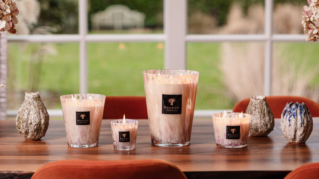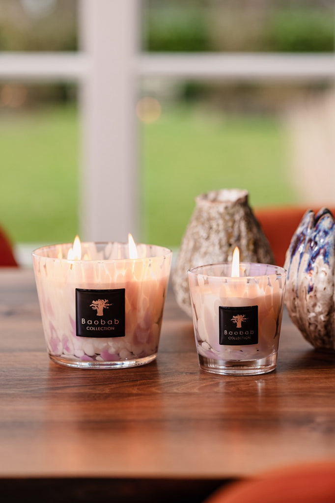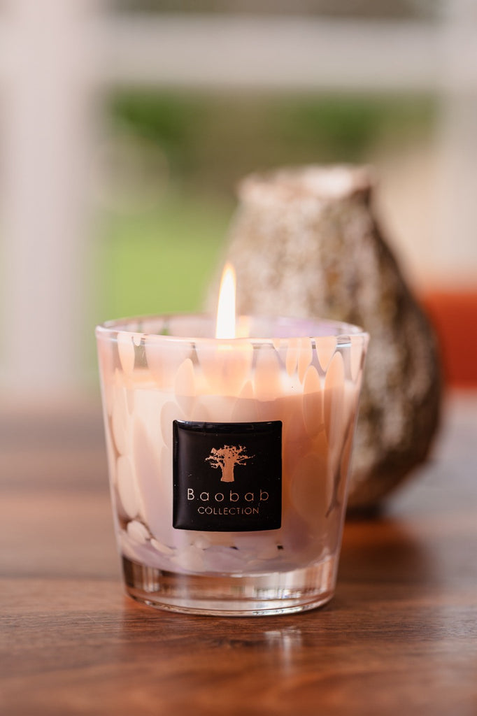 The Baobab Collection Max 08 White Pearls Candle embodies refined simplicity and modern elegance. Its hand-blown glass vessel, delicately accented in milky white, mirrors the soft luminosity of natural pearls. The scent—a harmonious blend of white musk and jasmine—creates a serene and inviting atmosphere that enhances any space with quiet sophistication.
