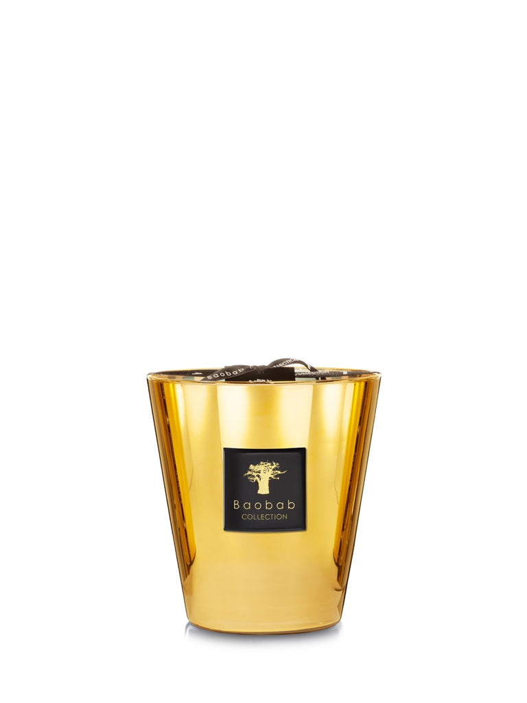 The Baobab Collection Max 16 Aurum Candle is a radiant expression of luxury and warmth. Encased in a gleaming gold glass vessel, its name—Latin for “gold”—captures the candle’s luminous spirit. The fragrance blends notes of rich jasmine and smooth musk, creating a soft yet opulent scent that transforms any space into an atmosphere of elegance and serenity.