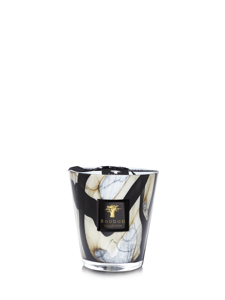 The Baobab Collection Max 16 Stones Marble Candle captures understated luxury in a vessel that mirrors the elegance of fine marble. Each hand-blown glass container features a unique white and gray marbled pattern, making every piece one of a kind. The scent—an alluring combination of leather and tuberose—infuses any room with warmth, depth, and quiet sophistication.