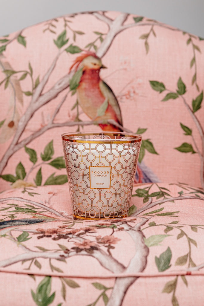 The Baobab Collection Max 16 Women Candle celebrates femininity with an air of refined elegance. Presented in a soft pink glass vessel accented with gold detail, it brings both beauty and warmth to any interior. The fragrance—a delicate blend of magnolia, rose, and musk—fills the room with a floral and powdery harmony that feels timeless yet modern.