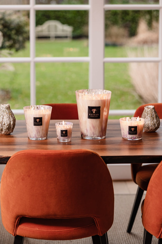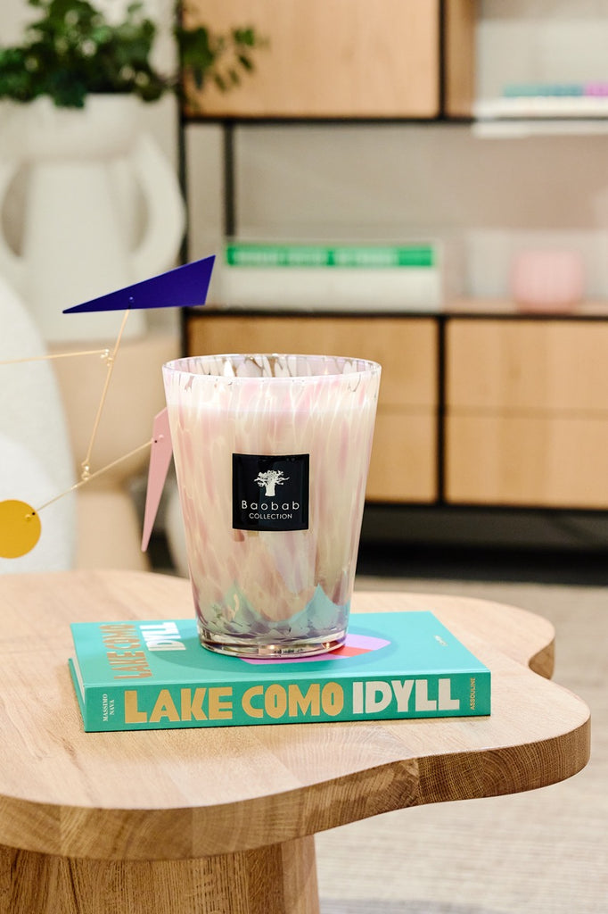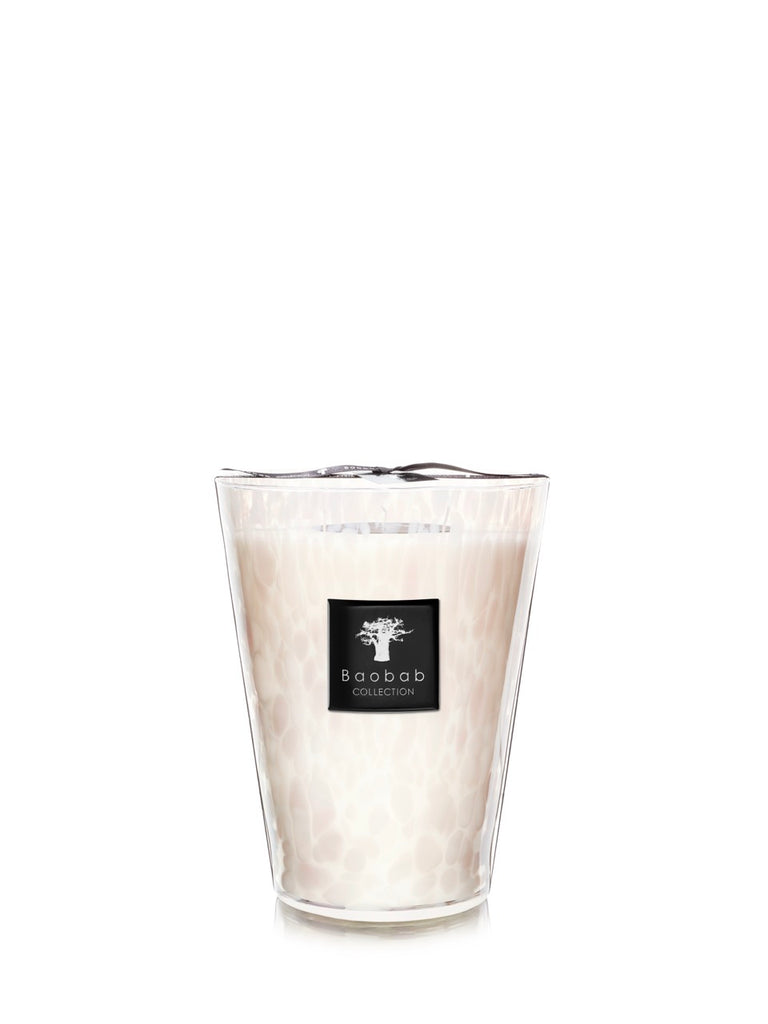 The Baobab Collection Max 24 White Pearls Candle is a timeless expression of elegance. Its milky-white glass vessel, hand-decorated with delicate translucent accents, evokes the luminous beauty of natural pearls. The fragrance—a graceful blend of white musk and jasmine—envelops the room in a soft, powdery ambiance that feels both pure and luxurious.