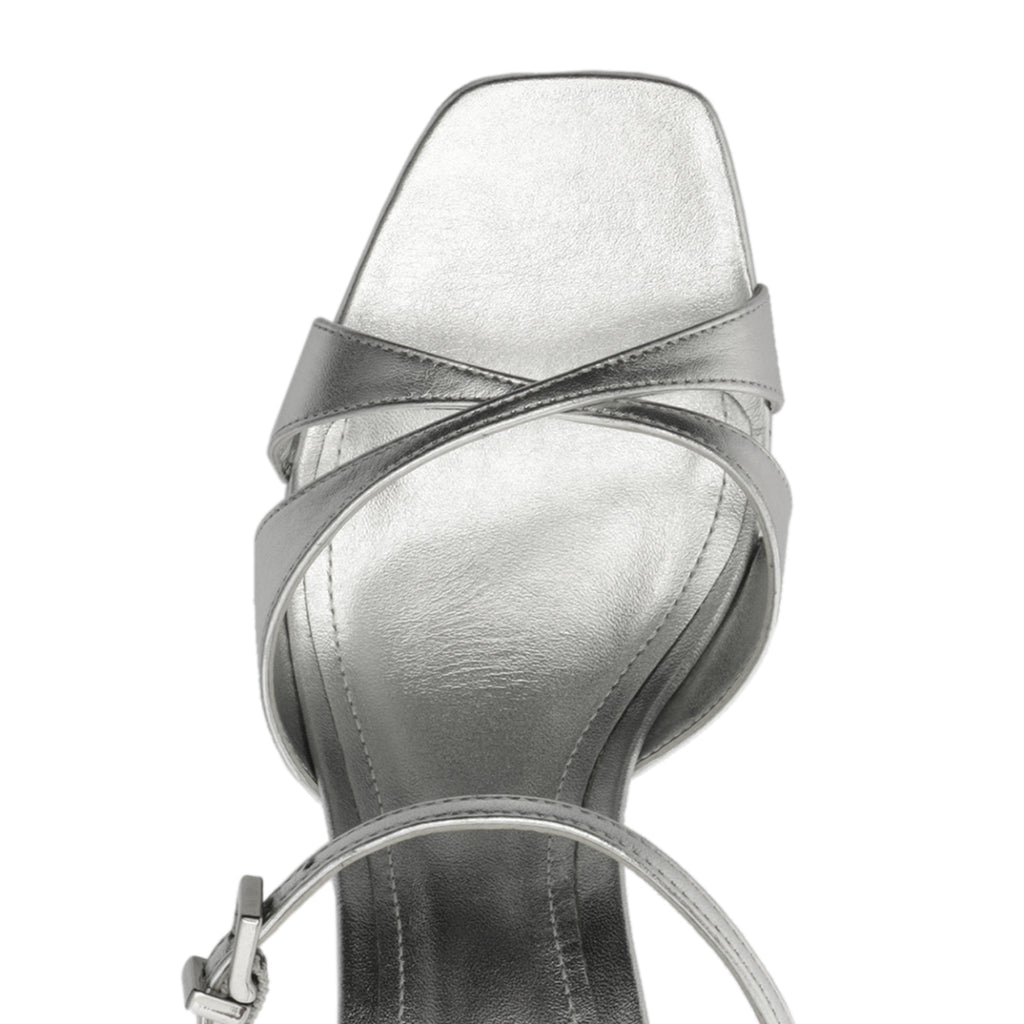 The Maxine Metallic Sandal in Silver delivers bold elevation with its slender stiletto heel and supportive platform sole. Designed to turn heads, it brings a confident edge to cocktail nights, celebrations, and any moment that calls for a striking lift.