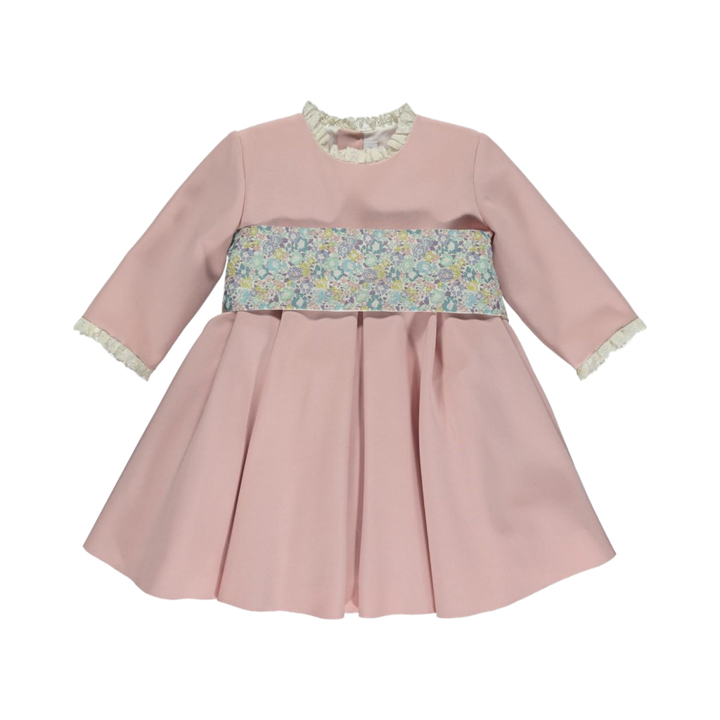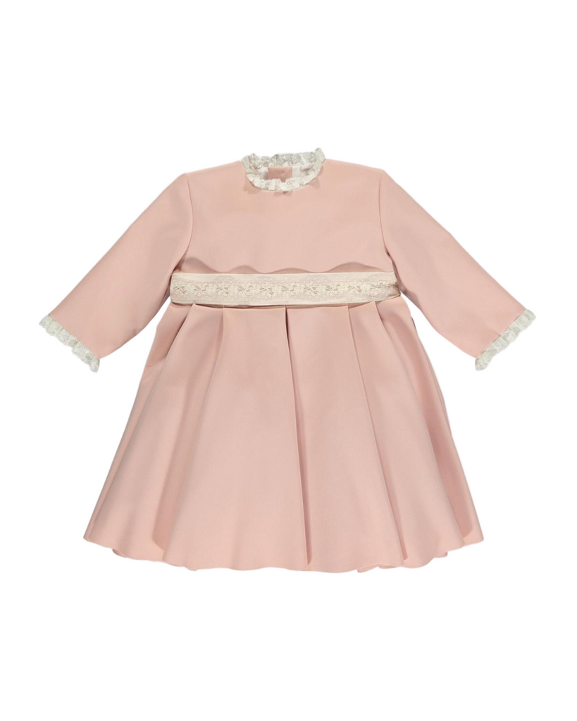 The Melanie Dress in Pink is a graceful celebration design that embodies classic femininity and timeless charm. Crafted from layers of soft pink crepe, this bespoke dress is pleated to create gentle volume and movement. Featuring delicate lace details, three-quarter sleeves, and an over-the-knee skirt lined with extra crepe layers and a tulle petticoat, it offers both structure and elegance. Finished with crepe-covered buttons at the back, it’s a beautifully tailored piece designed for flower girls and special celebrations alike.