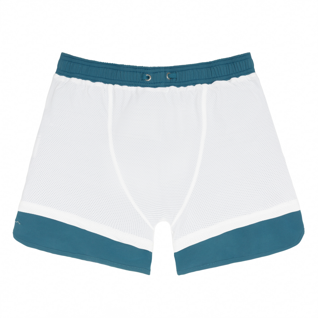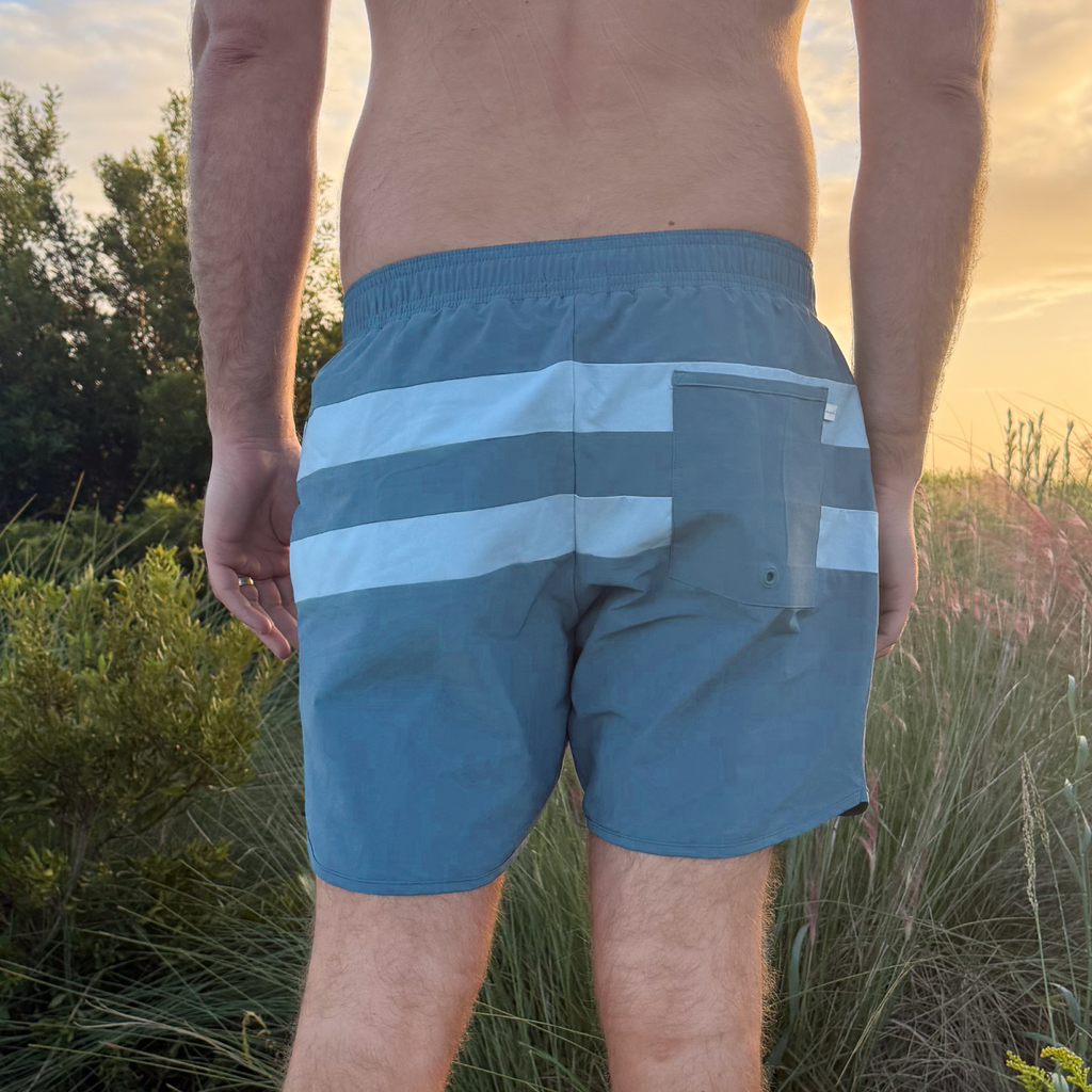 The Men’s Teal and Dusk Blue Colorblock Boardie offers a refined, modern take on a classic swim silhouette. Designed with a 6-inch inseam that hits just above the knee, it’s crafted in quick-dry fabric and finished with Minnow’s newly improved fitted boxer-like liner—exceptionally soft and stretchy for a smooth, supportive fit. An elastic waistband, side pockets, and an embroidered Minnow logo at the front leg complete this comfortable, all-day swim essential.