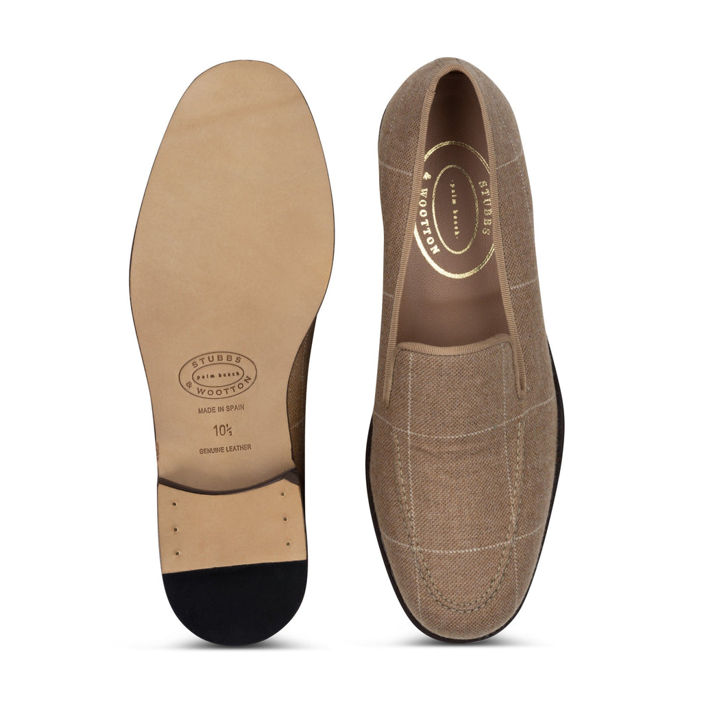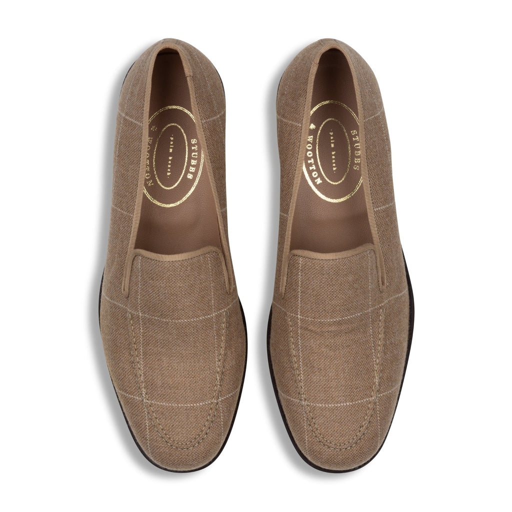 Founded in Palm Beach, Florida, Stubbs & Wootton has perfected the art of creating elevated, handmade women’s, men’s, and children’s shoes. Known for their exquisite needlepoint and embroidery, their slippers feature all-over patterns and fun, intricate accents. The Men’s Sartorial Camel Tweed Venetian from the latest Pre-Fall capsule is crafted in exquisite English cotton tweed and trimmed with cotton-silk grosgrain. Designed as a nod to the tailored traditions of England, this refined style brings heritage fabrics and modern ease together in a timeless silhouette.
