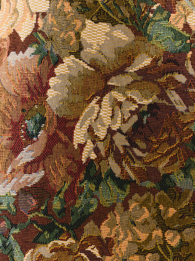 Floral jacquard fabric. Double-breasted silhouette. Green and white stripe pattern. Oversized fit with structured tailoring. Made in India.