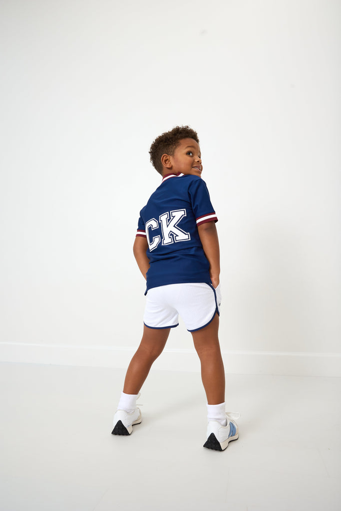 A polished blend of style and sport, Courtside Kids reimagines children’s activewear with performance fabrics, modern tailoring, and a classic athletic sensibility—made for everywhere from the playground to the country club. The Mesh Super Short in White with Navy Piping combines timeless court style with everyday versatility. Crafted from lightweight, breathable athletic mesh, it features a soft lining, contrast piping, and an easy pull-on elastic waistband—designed to keep boys cool, comfortable, and confidently on the move from practice to playtime.
