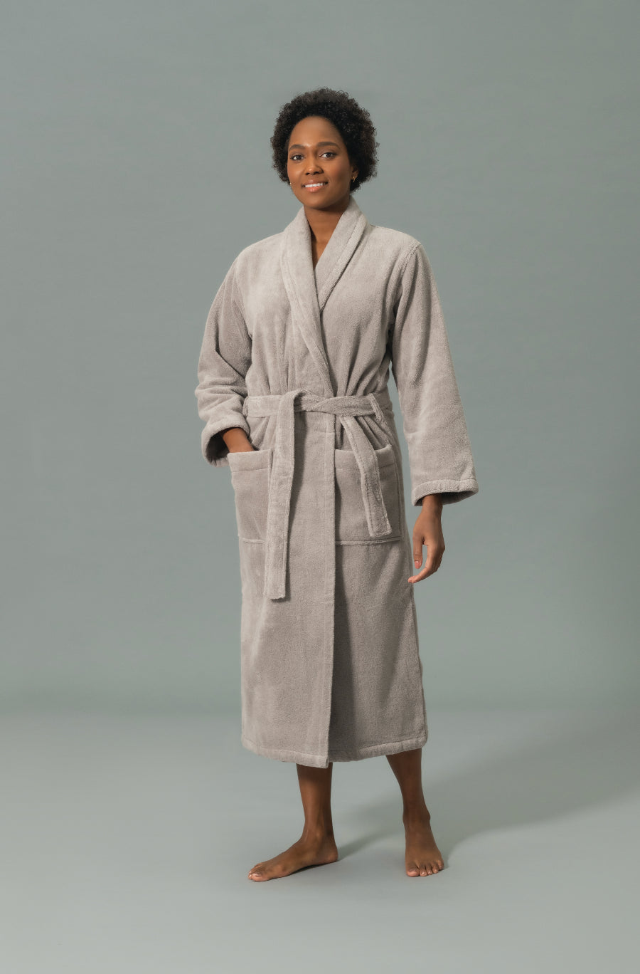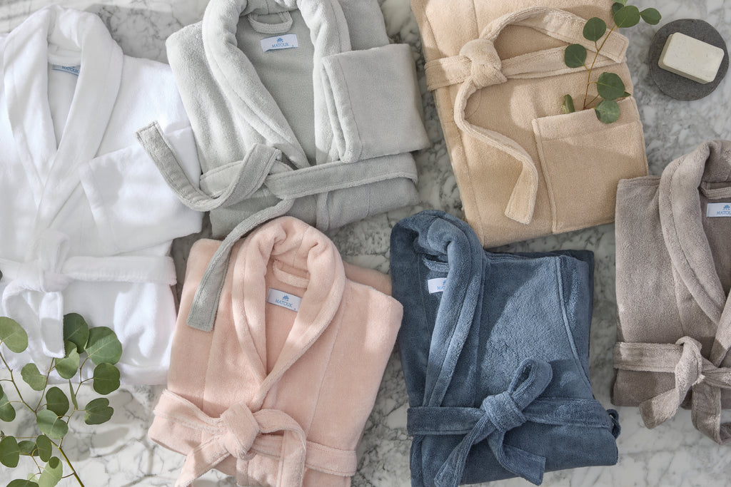 For nearly 100 years and three generations, Matouk has handcrafted luxury linens from the world’s finest materials. Their dedicated artisans in Fall River, Massachusetts are committed to creating the highest quality, most-loved bed, bath, and table linens for your home. Crafted from 100% zero-twist cotton, the Milagro Robe is exceptionally soft and cozy and features a handsome shawl collar. Available in three welcoming shades: petal, pool, and dune.
