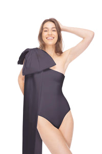 Nostalgia for the past—Brigitte Bardot films, classic Cartier pieces, Slim Aarons photographs—guides the hand of Stefana Tabacaru, the designer of Tabacaru. Made in America, sustainably, each piece features flattering cuts, clean lines, and the finest materials to help women feel like the best version of themselves. Black-tie swim—what a concept. The Milly in Black with Black Bow is an elegant, glamorous swimsuit. With a removable dramatic bow and a cool one-shoulder body, this is the ideal “ladies that lunch” meets bond girl suit.