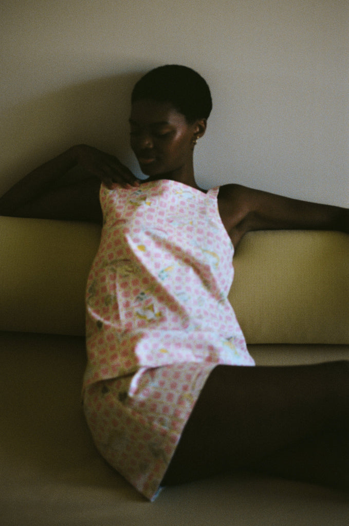 The Mini Skirt in Pink Fishing Net is crafted from soft, structured, textured cotton and cut in a clean A-line silhouette. Mid-rise and fully lined, it offers a polished, easy shape that pairs effortlessly with both fitted tops and relaxed knits. An invisible back zipper ensures a smooth, seamless finish.
