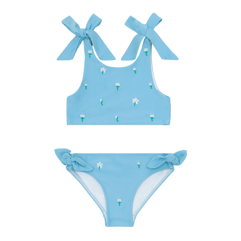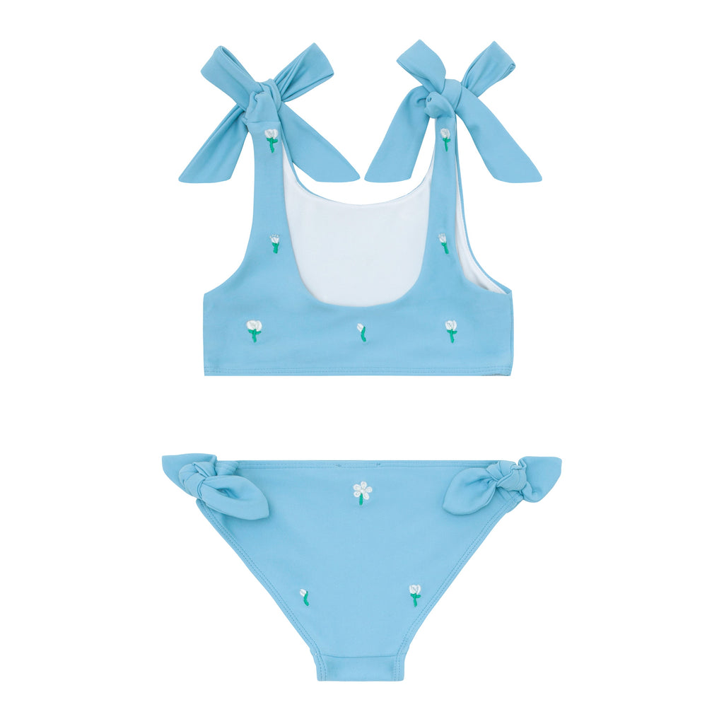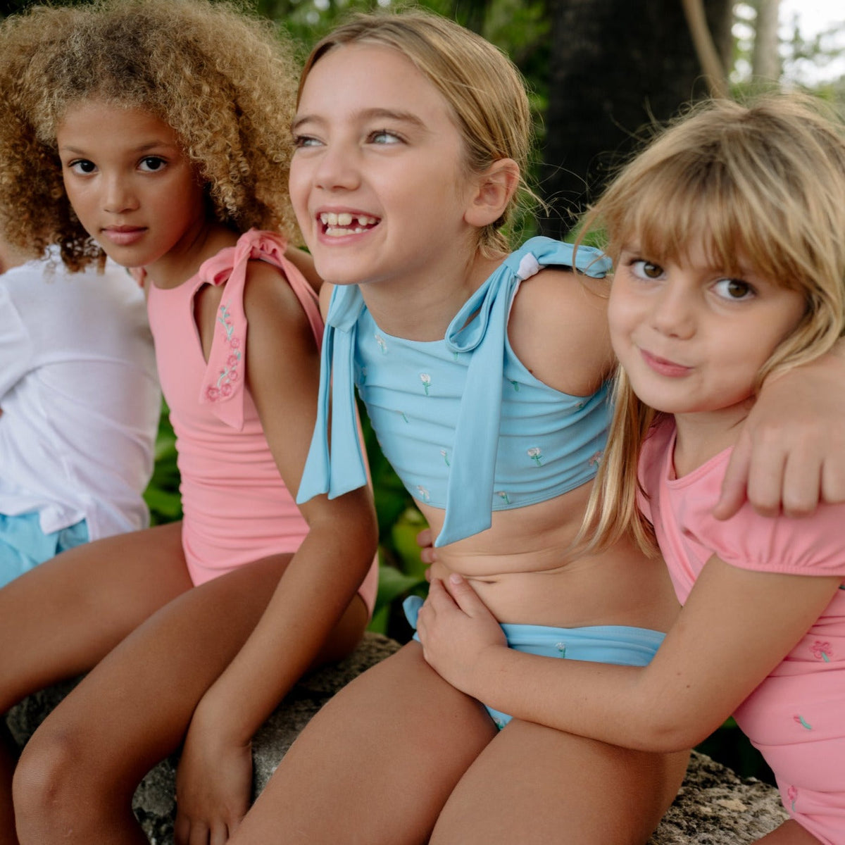A family favorite for its clean lines and simple details, minnow creates pieces that are playful, polished, and thoughtfully designed for long days, sandy toes, and the wonderment of life on the shore. Part of its capsule collection with Fanm Mon, a womenswear brand that celebrates the natural bounty of its Haitian heritage, the minnow x Fanm Mon Girls Lagoon Tie Knot Bikini has a straight front neckline and scooped back allow for easy movement. Featuring hibiscus flower details, and easily adjustable, exaggerated ties, it's cute as can be, and their new favorite swimsuit.