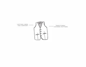 Doloris Petunia creates a made-to-order luxury experience for any child’s most special occasions. Designed in Brooklyn, this brand celebrates childhood with a modern aesthetic and couture detailing, helping children explore who they are and bring their dreams into being. The Ring Bearer Waistcoat mixes fine wool suiting with seersucker lining for maximum comfort and a cool, classic look. Pair with a crisp oxford shirt and style with or without knee high socks for a more relaxed twist on a traditional tuxedo.