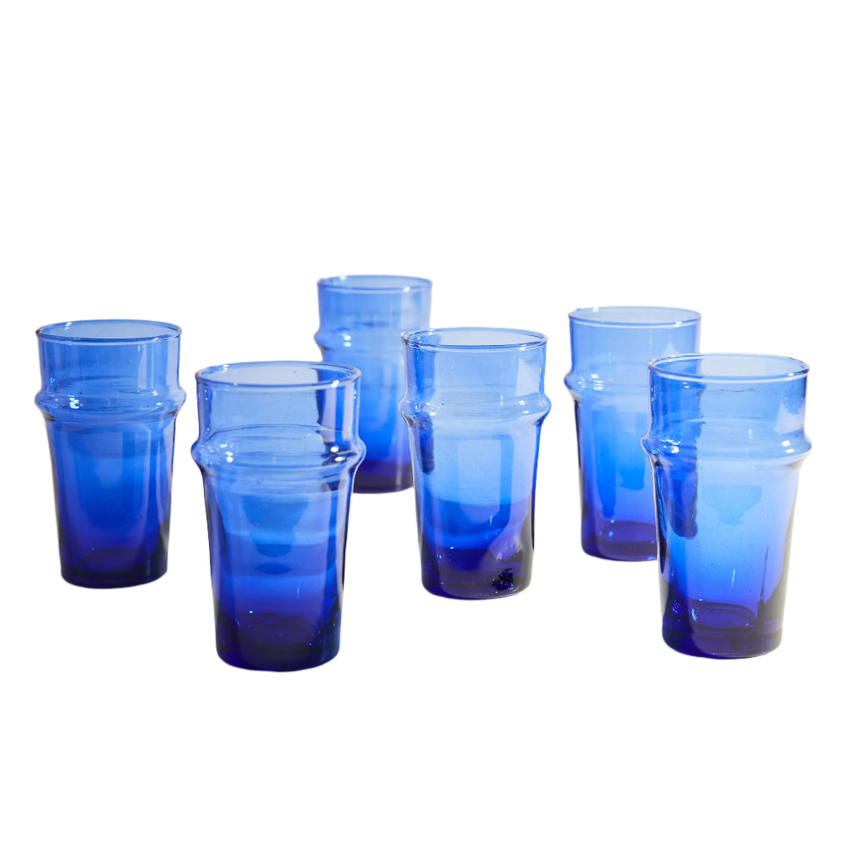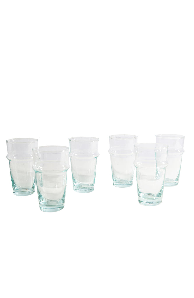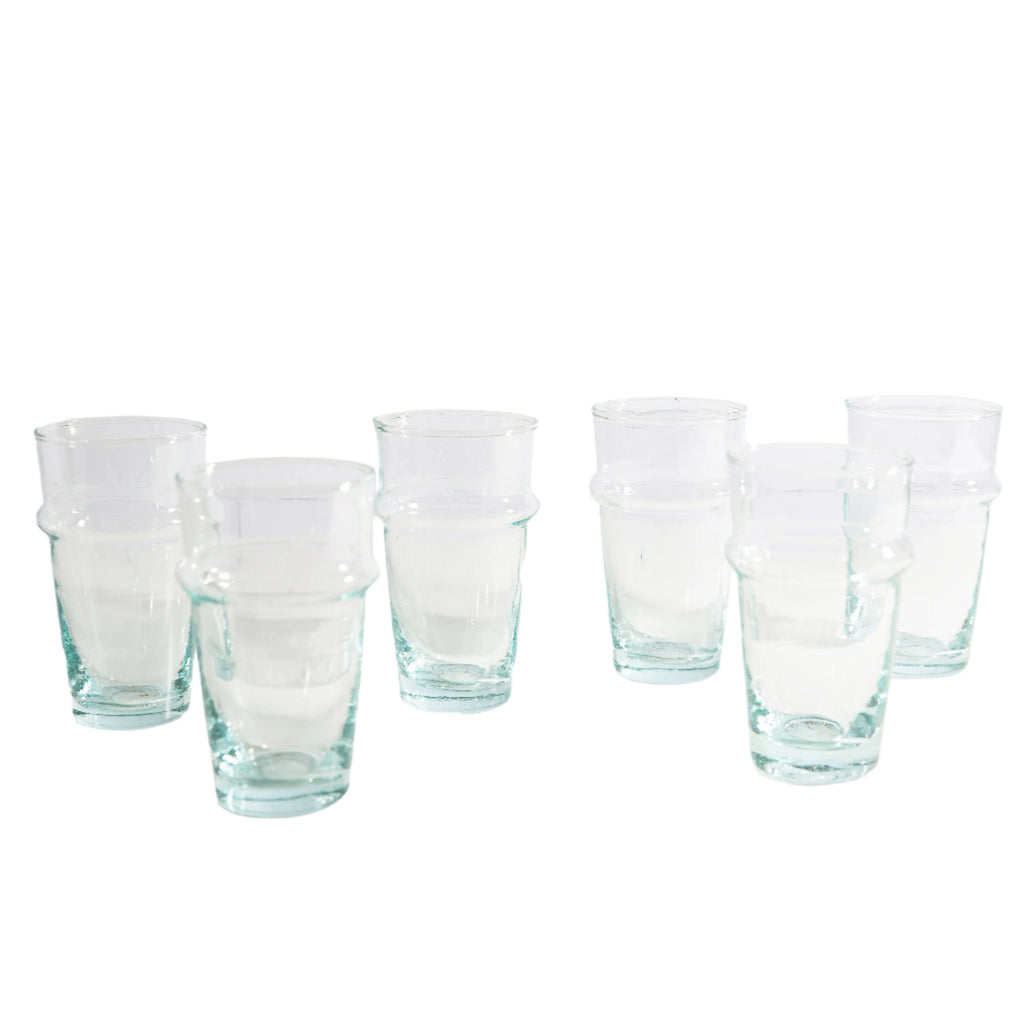 Set of 6. Made of recycled glass. Hand-blown in Morocco.