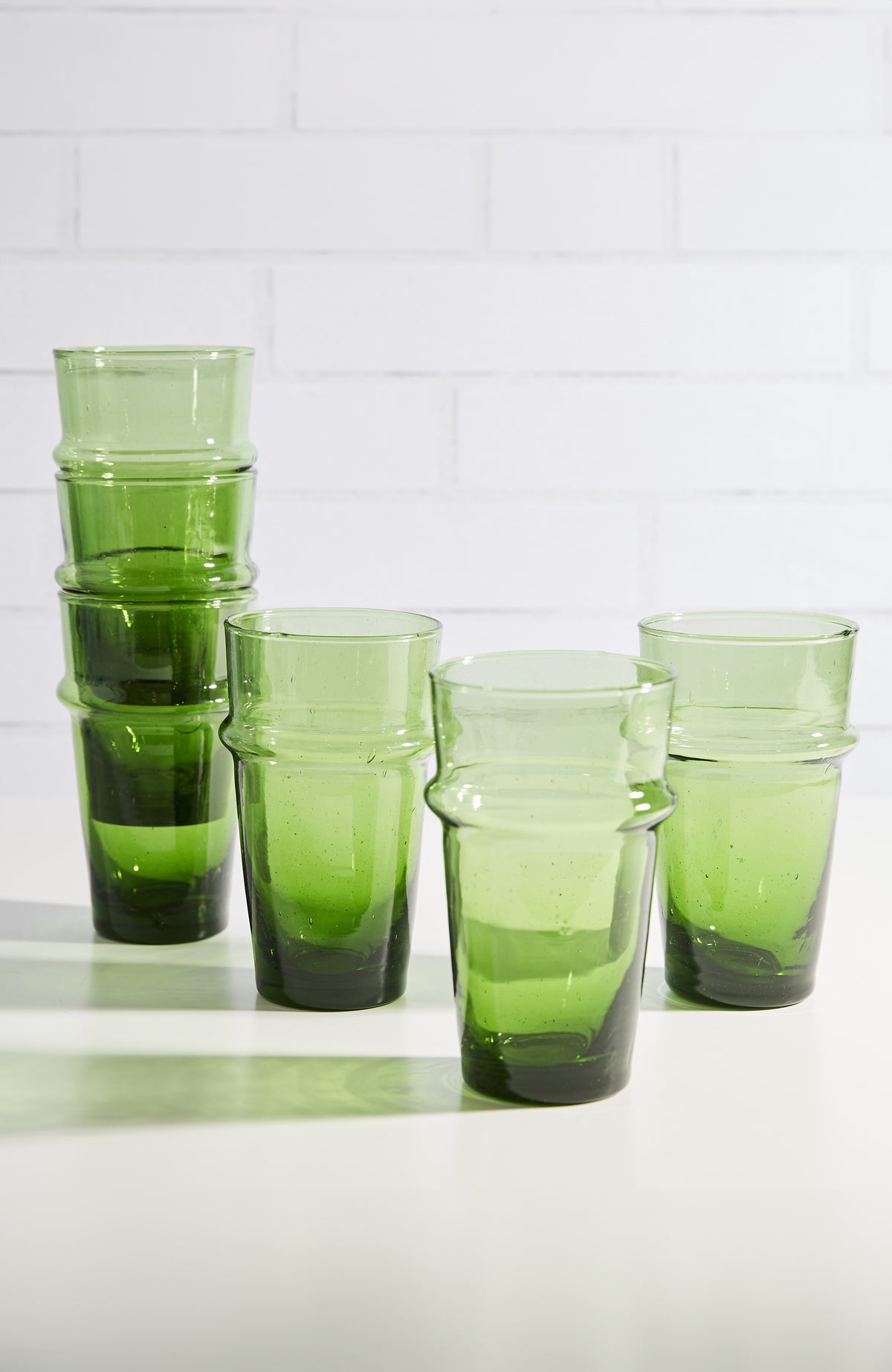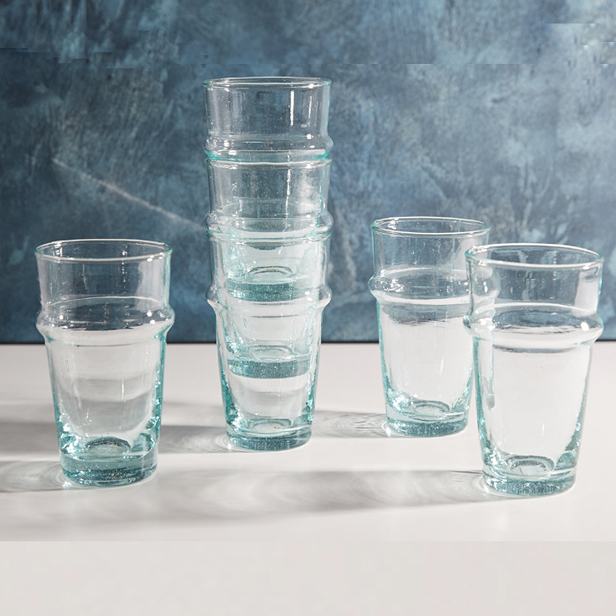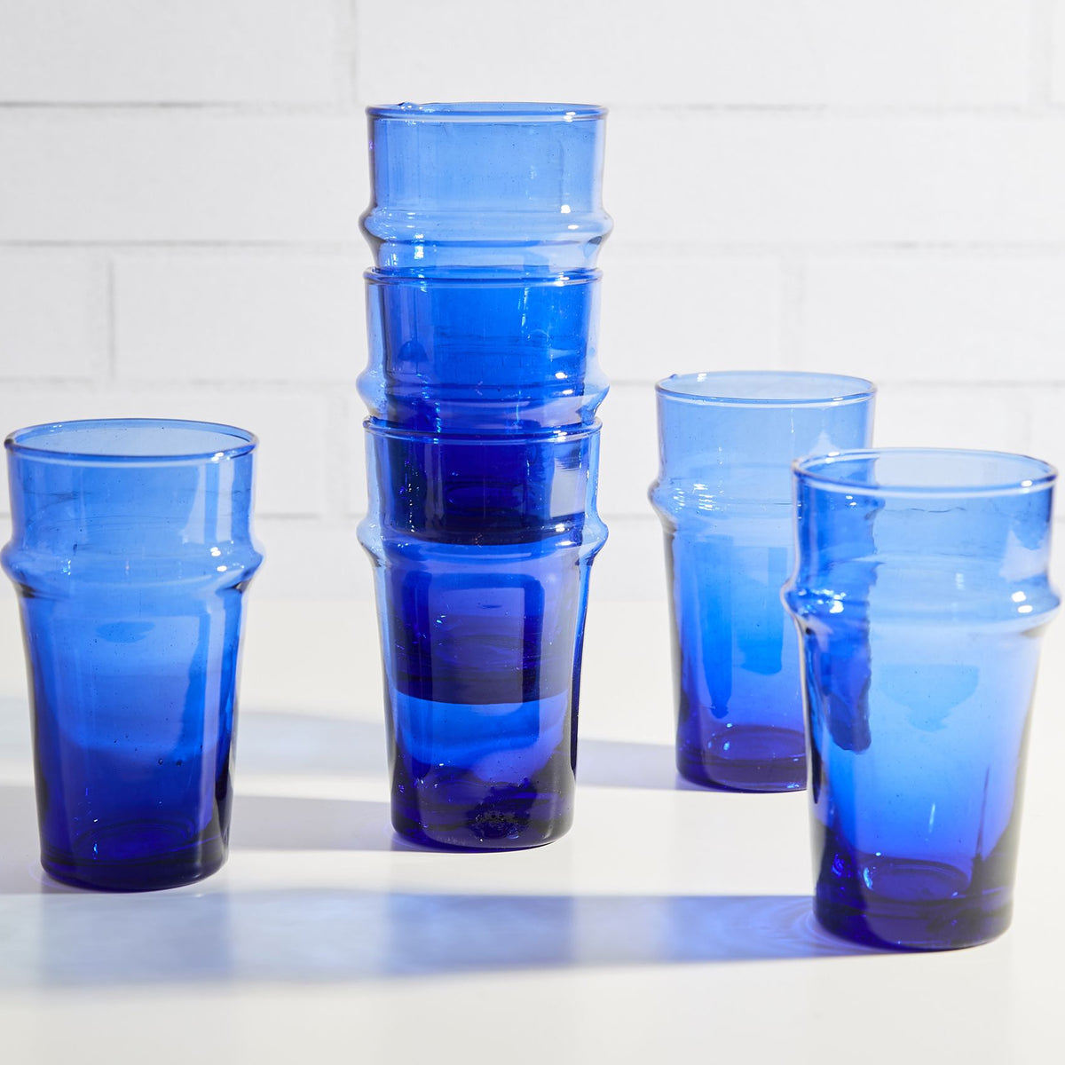 Set of 6. Made of recycled glass. Hand-blown in Morocco.