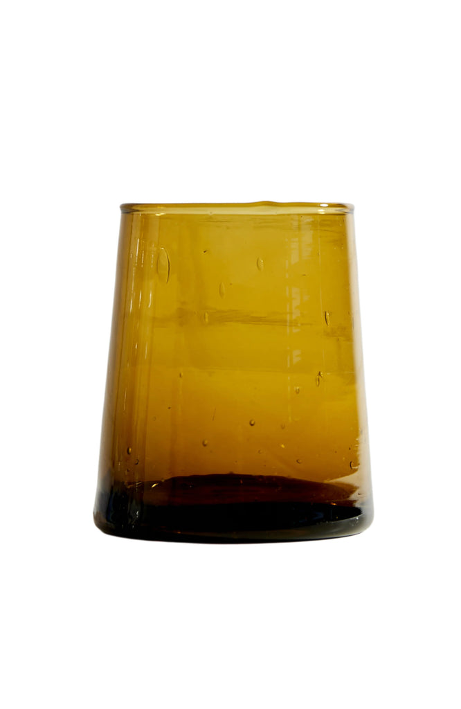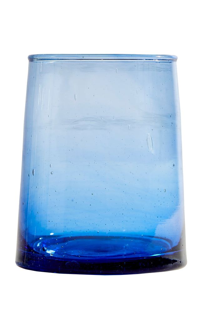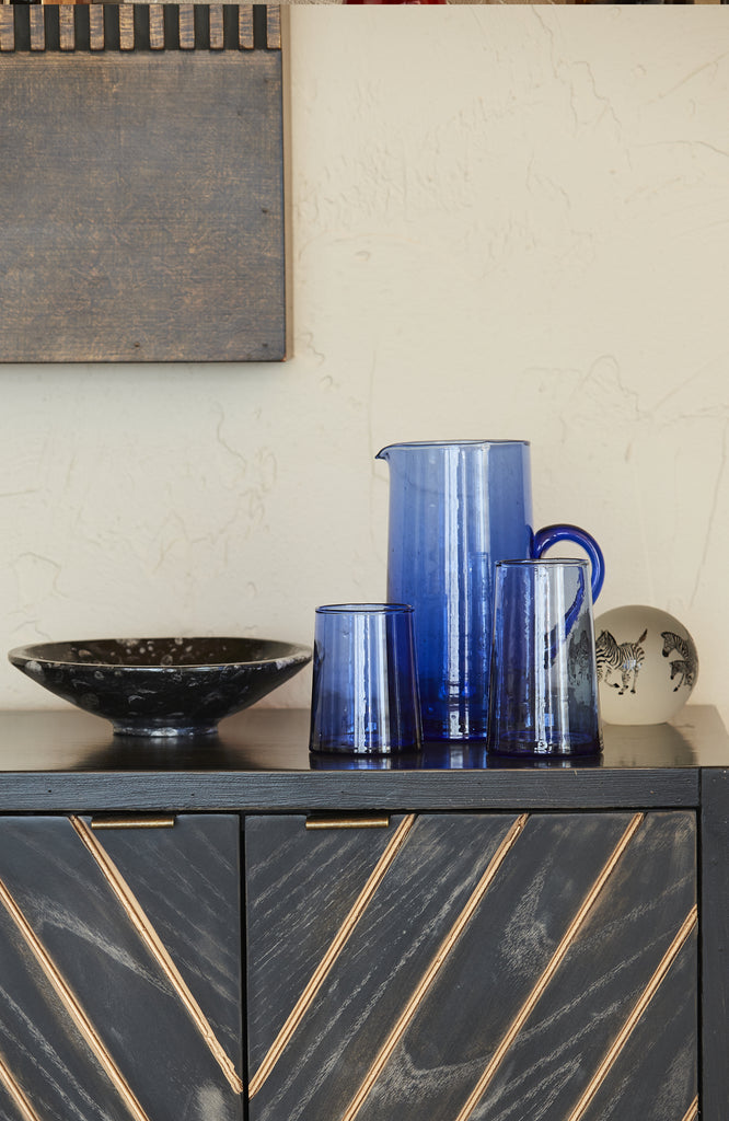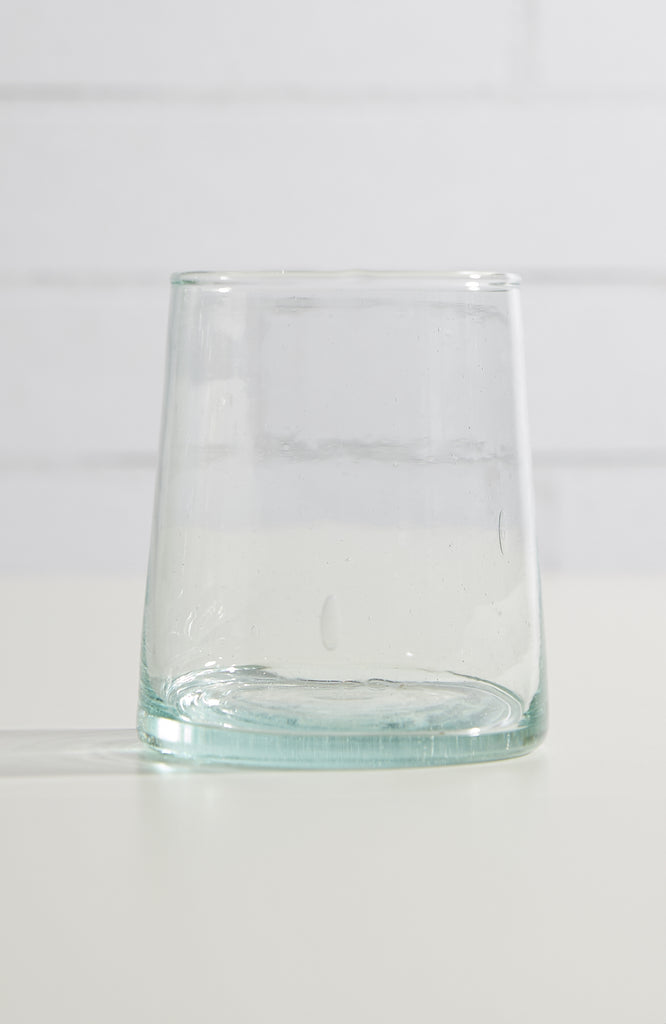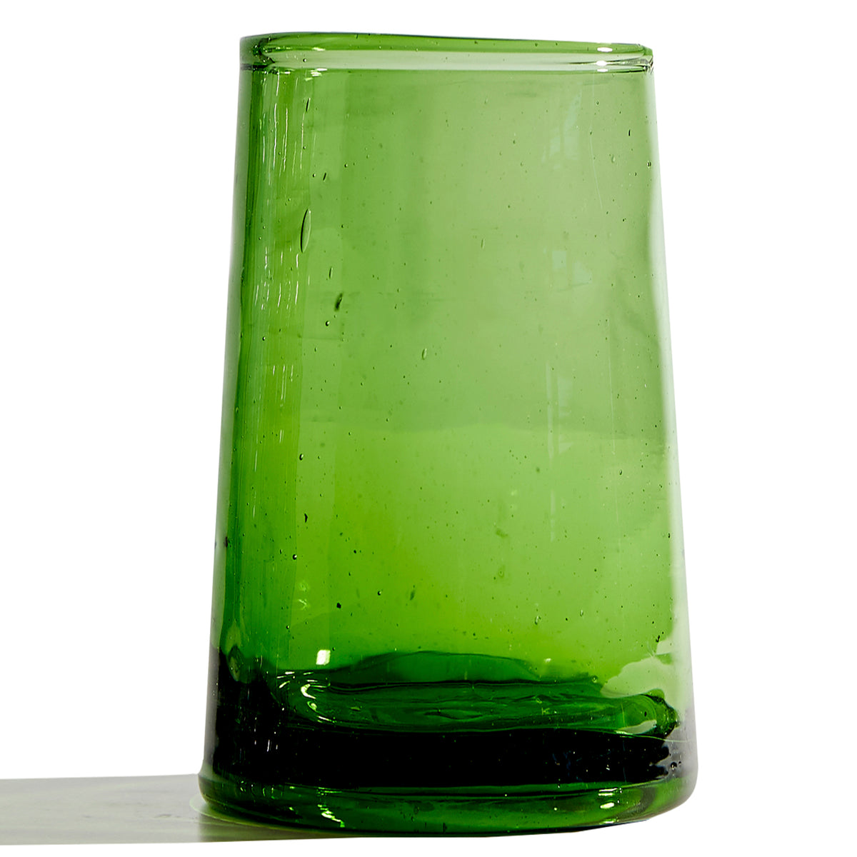 Made from recycled beer and wine bottles, these beautiful jugs are a second act for glass that would otherwise be sent to landfills. The hand-blown construction is evident in the bubbles suspended in the glass itself, and the organic forms that the vessels take. Hand-blown in Morocco.