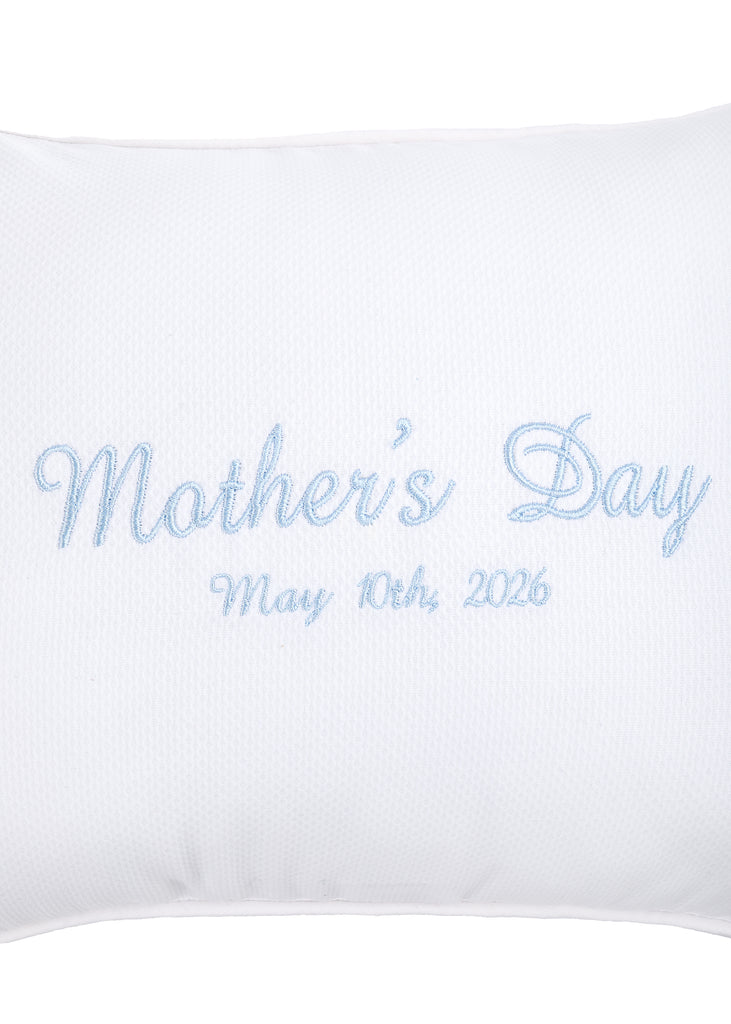 The Extra Special Personalization Pillow is a keepsake designed to be cherished for years to come. Crafted in crisp white with classic piqué piping, this pillow can be customized with a meaningful message, special date, or heartfelt sentiment of your choosing. Whether celebrating a birthday, holiday, milestone, or simply sharing a note of love, it adds a thoughtful, personal touch to any bedroom, sitting area, or nursery. The “Mother’s Day” example shown is for inspiration—your message makes it uniquely yours.