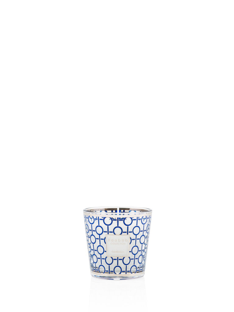 The Baobab Collection My First Baobab Gentlemen Candle Max08 pays homage to timeless masculinity with a modern sensibility. Encased in an elegant glass vessel adorned with a platinum and navy blue silk-screened design, it evokes the image of a sharply dressed gentleman. The refined scent combines rum, saffron, and labdanum—warm, spicy, and subtly sweet—creating an atmosphere of effortless sophistication.