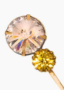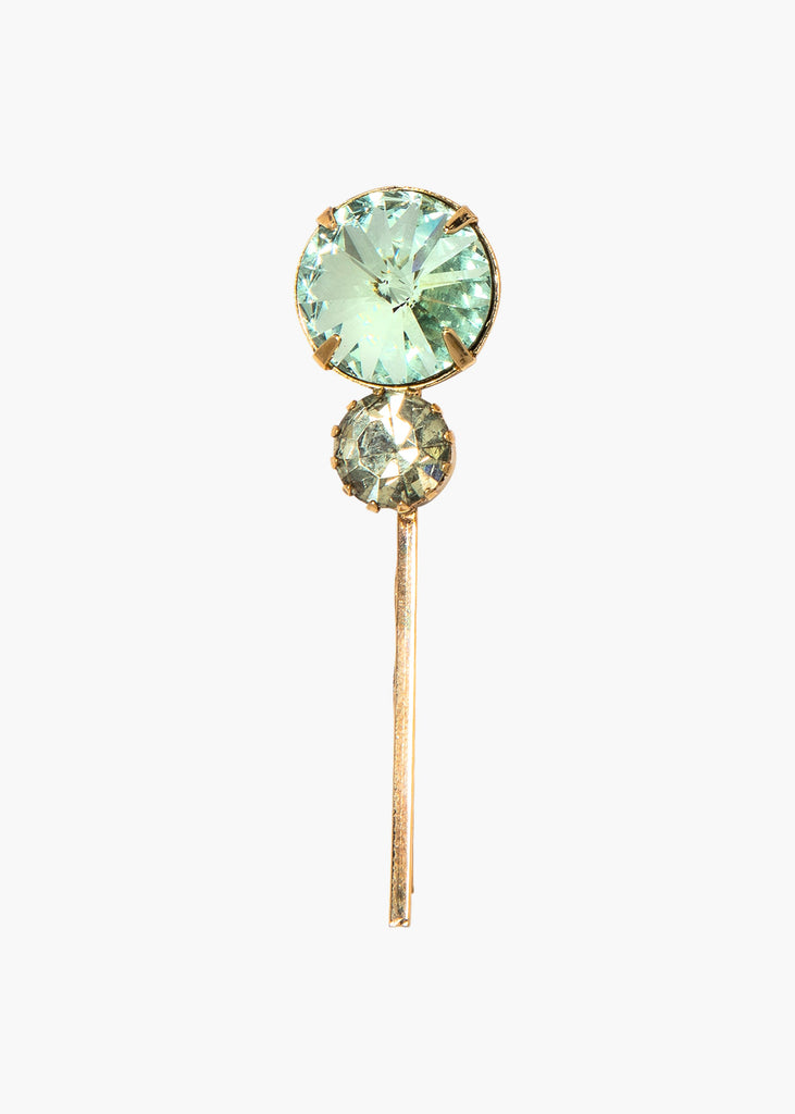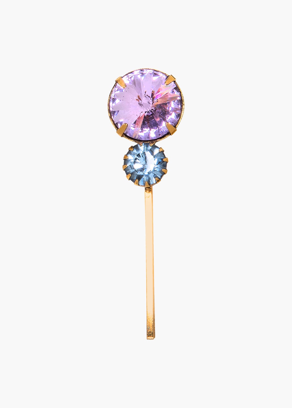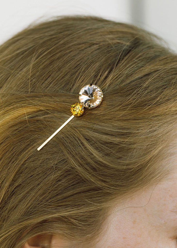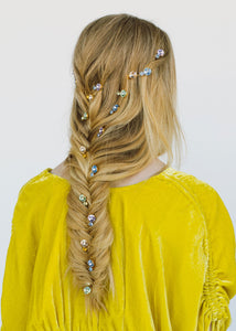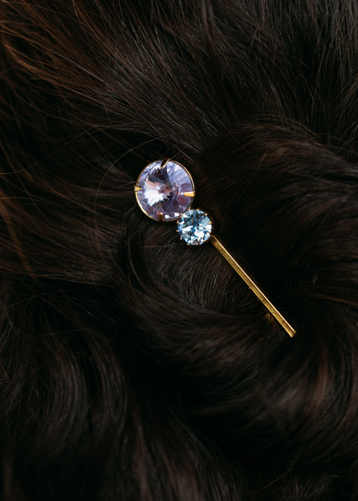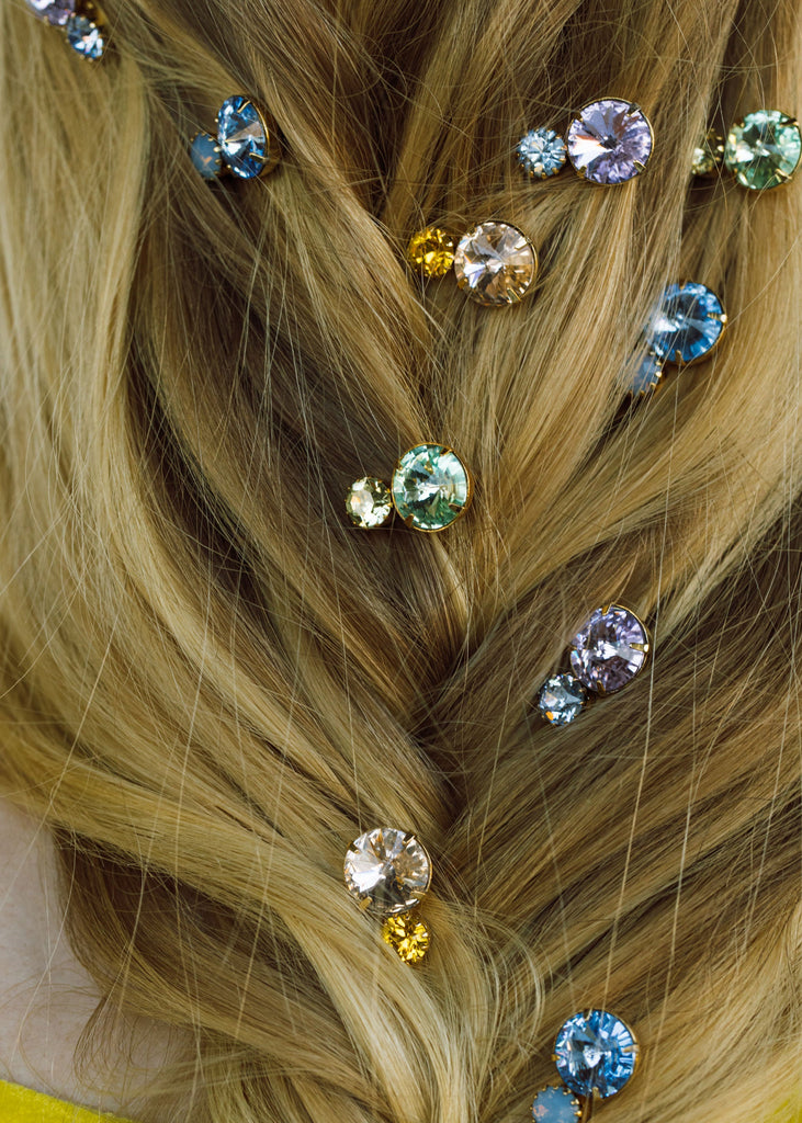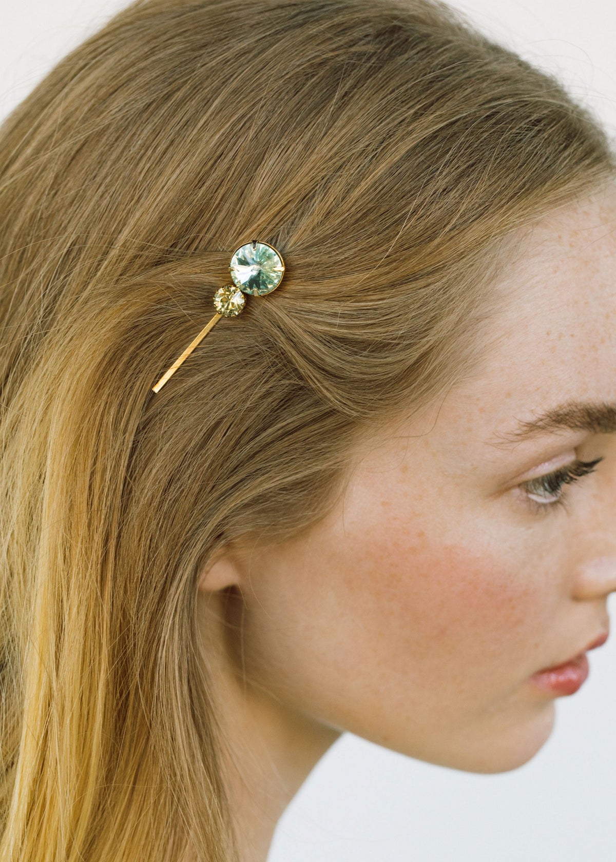 “Everything has a story to tell,” says Jennifer Behr, the founder of her namesake luxury hair accessory brand that has blossomed into one of New York City’s foremost ateliers for jewelry, bridal, and other accessories. In every crystal, pearl and ribbon, you’ll find the utmost quality and a sense of romance, as each piece reveals a modern interpretation of centuries-old regalia. Crafted from a combo of colorful crystals, and then smaller, complimentary stones, the Myrla Bobby Pin is a clever, furiously fun way to tie back your hair.