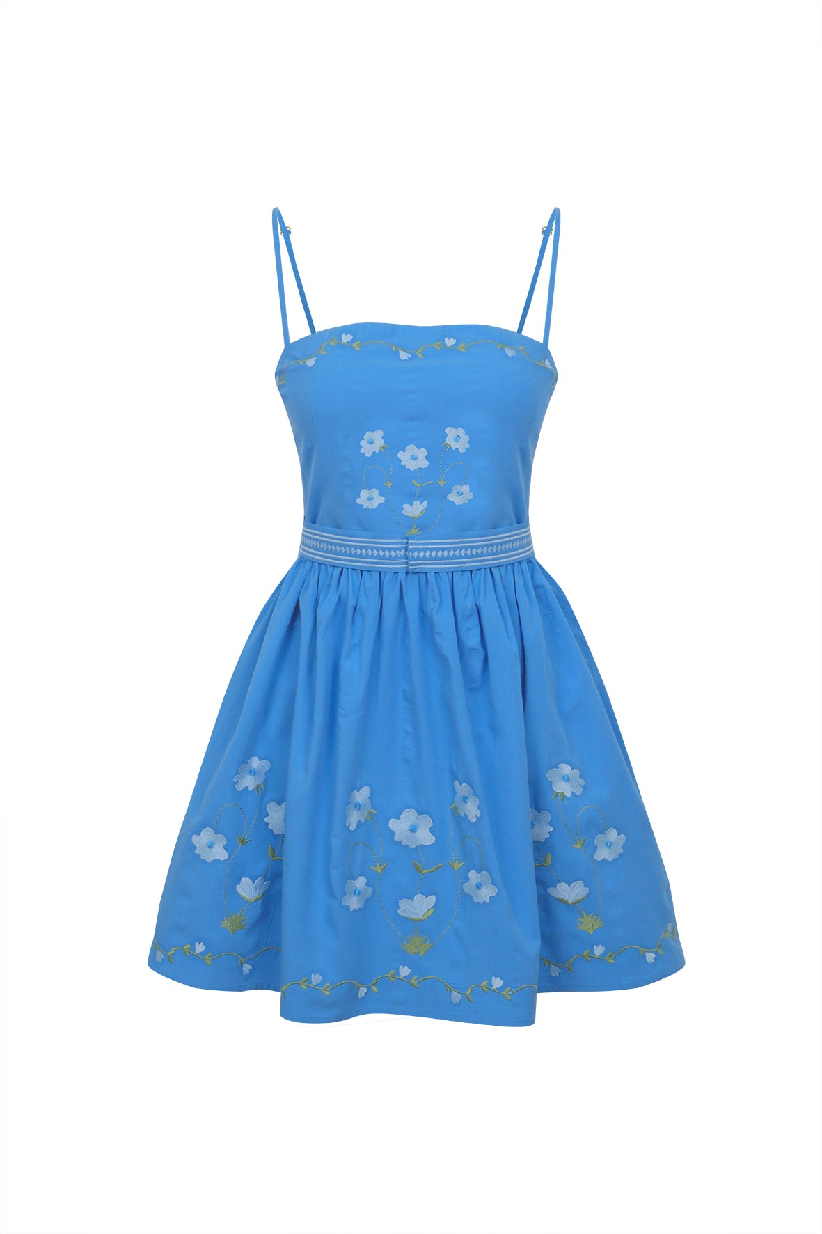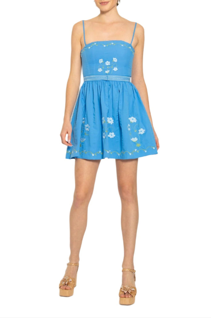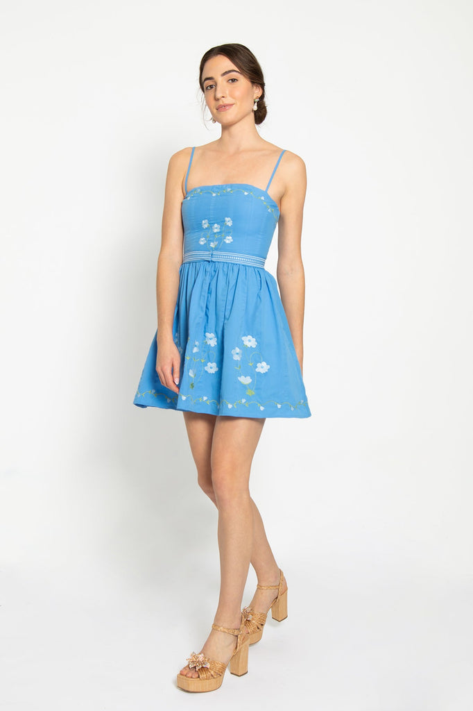The name Fanm Mon is taken from a Haitian phrase meaning “mountain woman,” reflecting both the founder’s heritage and the spirit of their clothing. Nature’s bounty, fairytale silhouettes, and exploration come together in dresses of outstanding quality, which hold a classic place, yet defy expectations. The Nalan Dress captures garden-inspired romance in cobalt blue cotton with bouquet-style wildflower embroidery in soft blues, greens, and whites. With a flattering square neckline, removable waist belt, and convertible straps, this mini silhouette balances versatility and charm with ease.