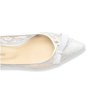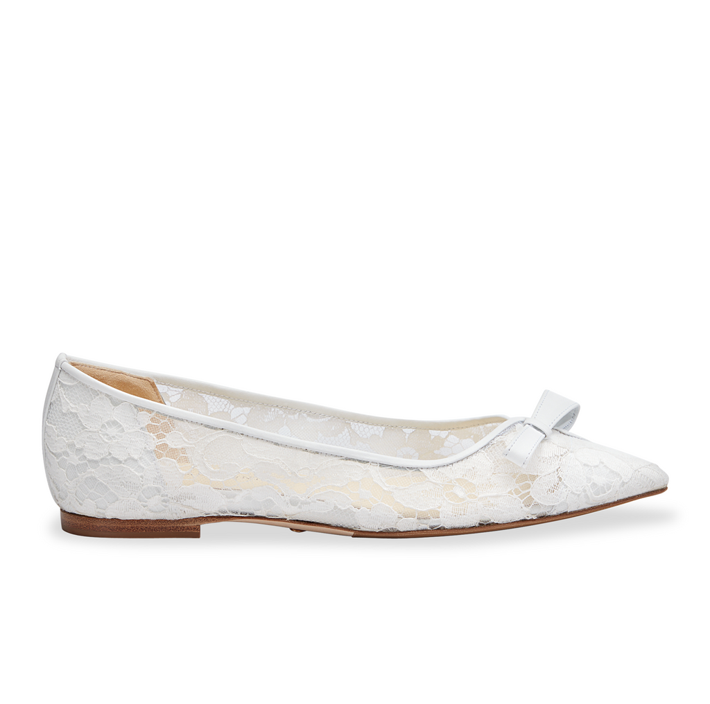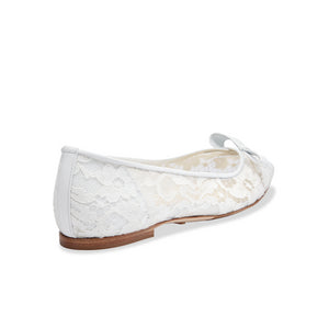 Handcrafted in Italy's Amalfi Coast, the Natalie is an elegant ballerina slipper in white lace. Featuring a bow embellishment, these shoes are casually chic. Effortlessly elevate every outfit with the Natalie.