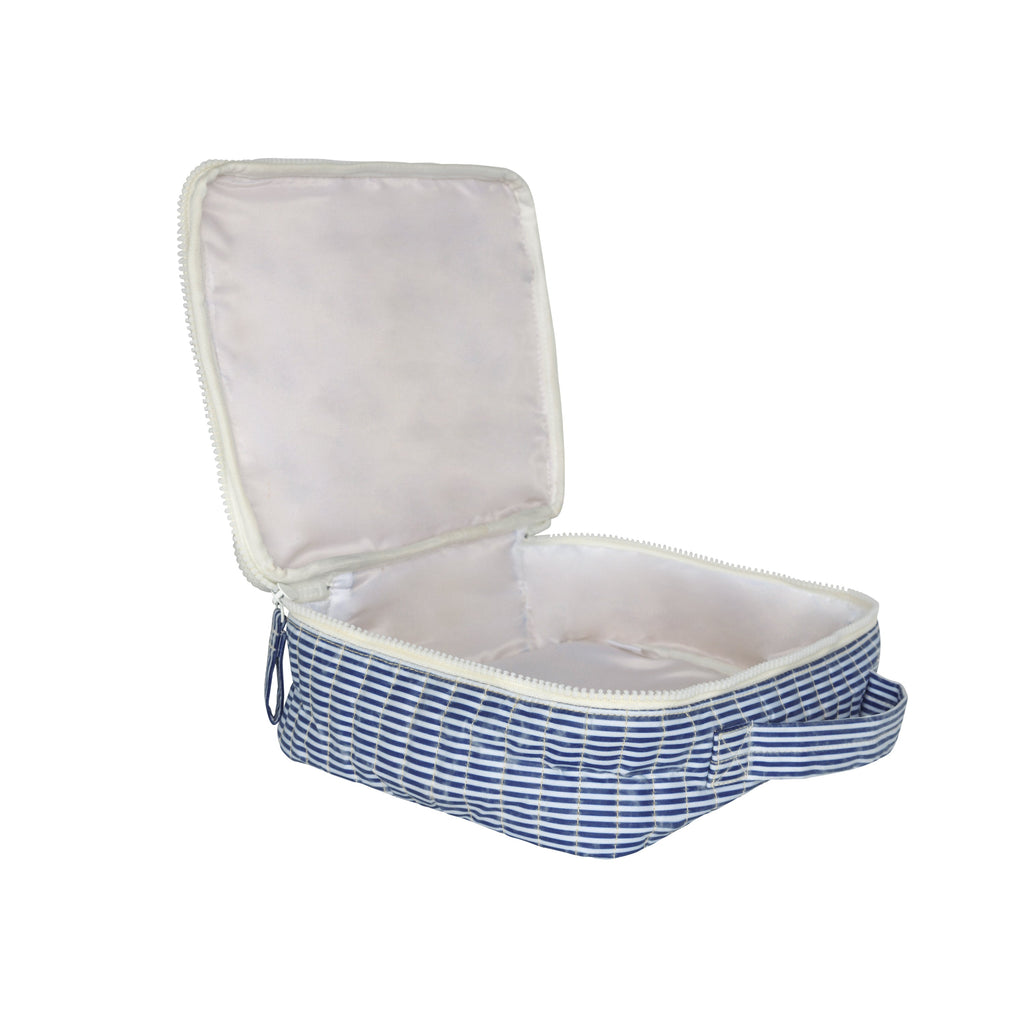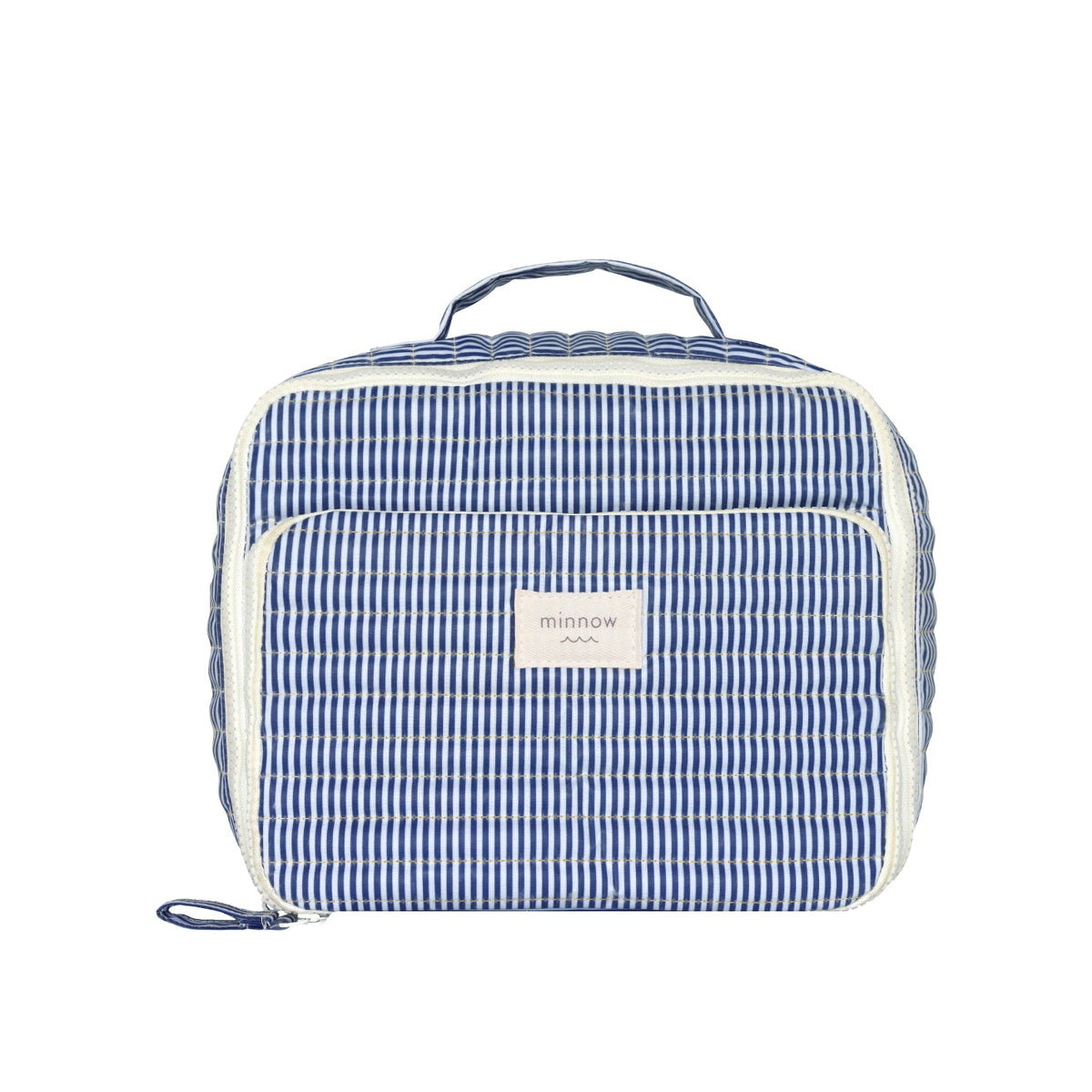 A family favorite for its clean lines and simple details, minnow creates pieces that are playful, polished, and thoughtfully designed for long days, sandy toes, and the wonderment of life on the shore. The Navy Stripe Coated Lunchbox is made with on-the-go lifestyles in mind. Ideal for everything from travel to the beach, to school, this lunchbox is thoughtfully designed with a compact shape, two front pockets, and convenient top-carry handles. Other details include a new, spill-proof coating on the outside, with a spacious water-resistant interior liner that fits an ice pack and your little one’s favorite snacks.