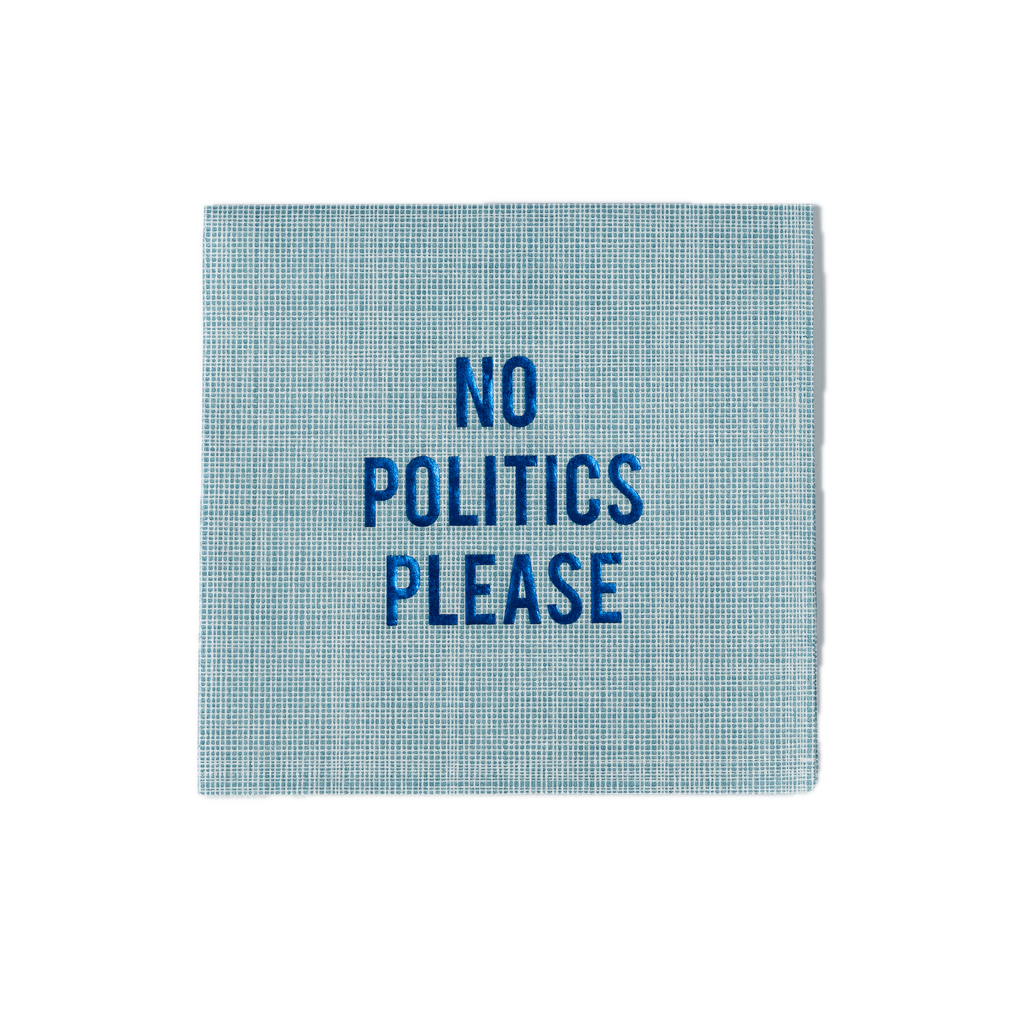 Keep the peace (and the drinks flowing) with the “No Politics Please” Disposable Napkins, Set of 20. Designed for hosts who value both style and sanity, these teal napkins are crafted from thick, linen-feel paper that looks as good as it feels. Embellished with shiny blue foil lettering, they strike the right balance of chic and cheeky—guaranteed to earn a laugh without starting a debate.