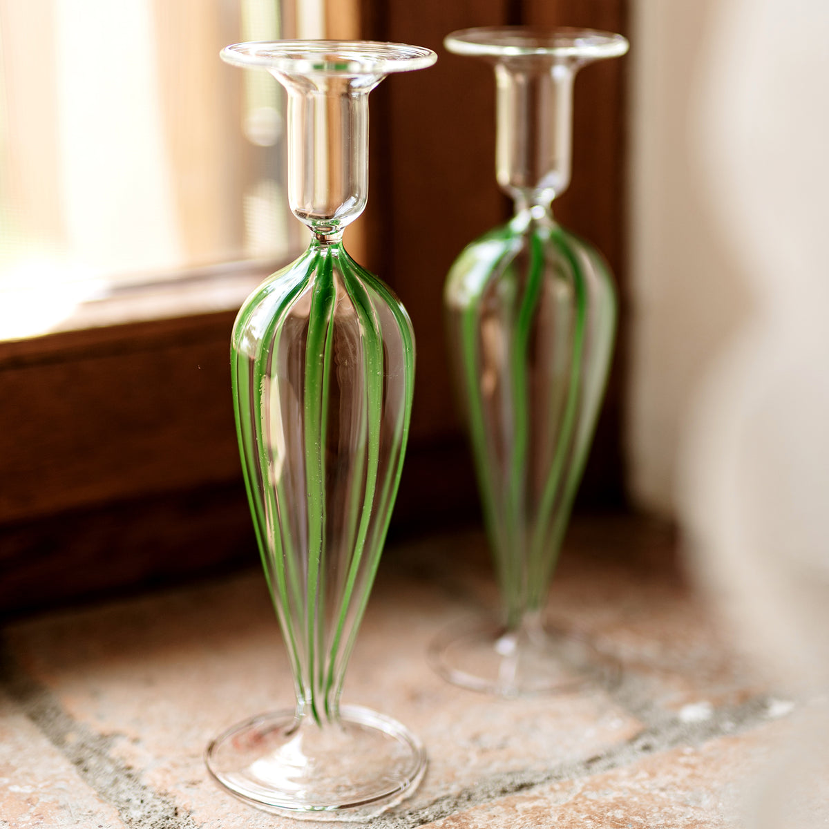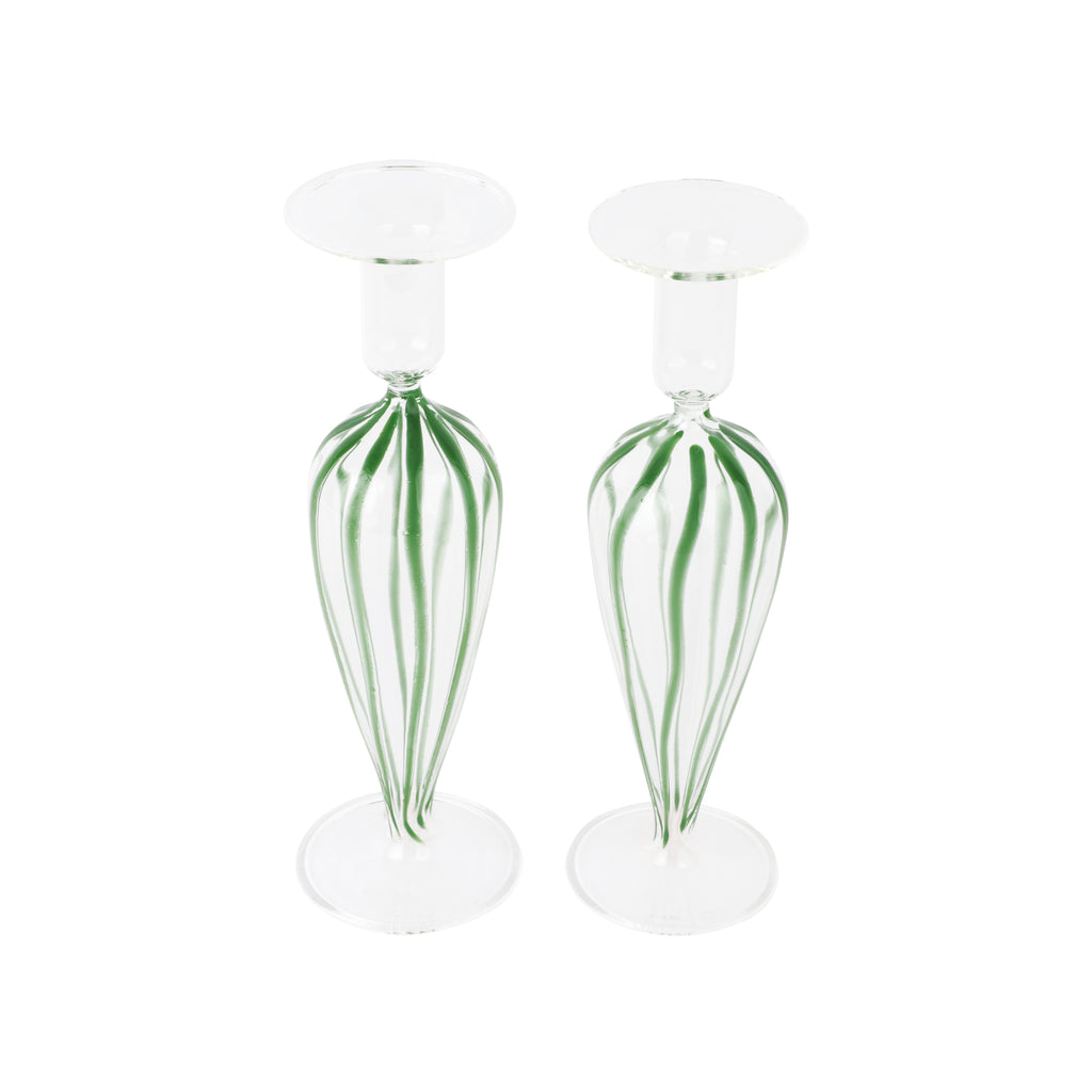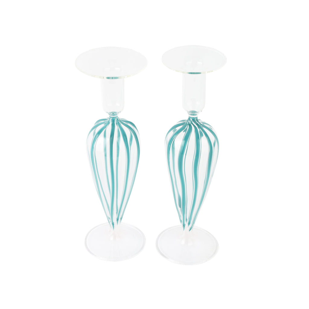 Inspired by Italian lifestyle, history, and culture, VIETRI uses the highest-quality clays from the soil of Italy’s countryside to produce beautiful, everyday items for your home. Hand-painted details, quality glazes, and fine craftsmanship help you savor the moments spent at your table and the company of those who join it. Mouthblown by skilled artisans, the Nuovo Stripe Candlesticks, Set of 2 boasts painterly stripes cascading down each piece—a colorful touch to your tablescape.
