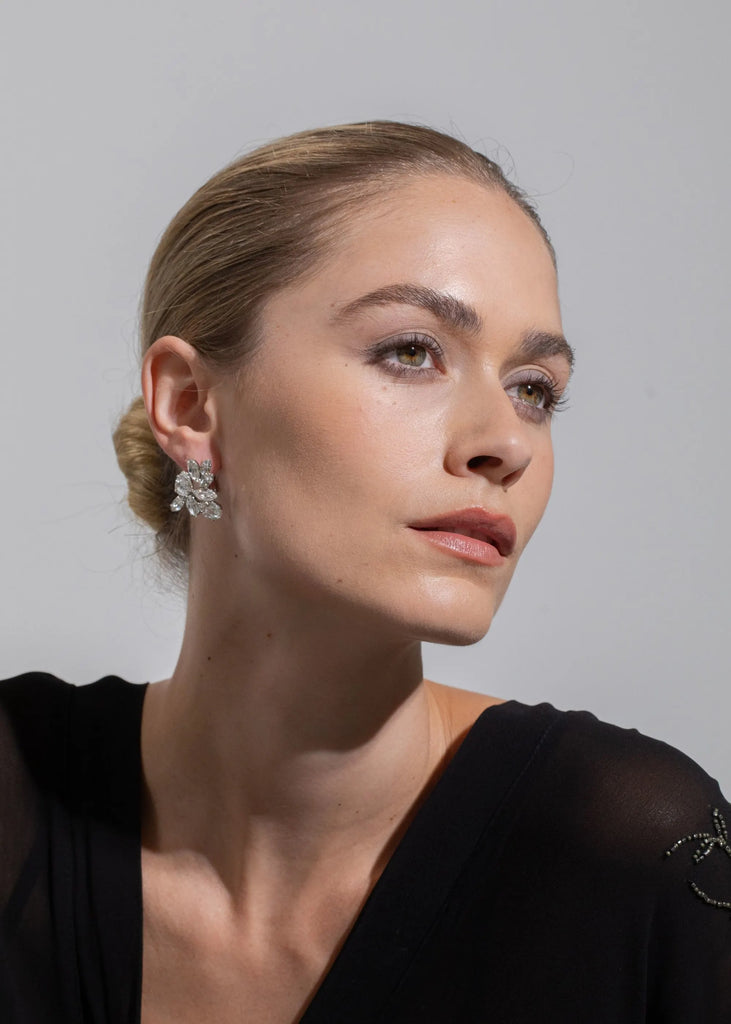 “Everything has a story to tell,” says Jennifer Behr, the founder of her namesake luxury hair accessory brand that has blossomed into one of New York City’s foremost ateliers for jewelry, as well as bridal. In every crystal, pearl, and ribbon, you’ll find the utmost quality and a sense of romance, as each piece reveals a modern interpretation of centuries-old regalia. The Octavia Earrings in Crystal embody effortless sophistication, featuring an abstract composition of fine Austrian crystals in mixed cuts that catch the light from every angle. Handcrafted in New York and finished with an omega back, they sit gracefully on the earlobe for polished, day-to-night versatility.