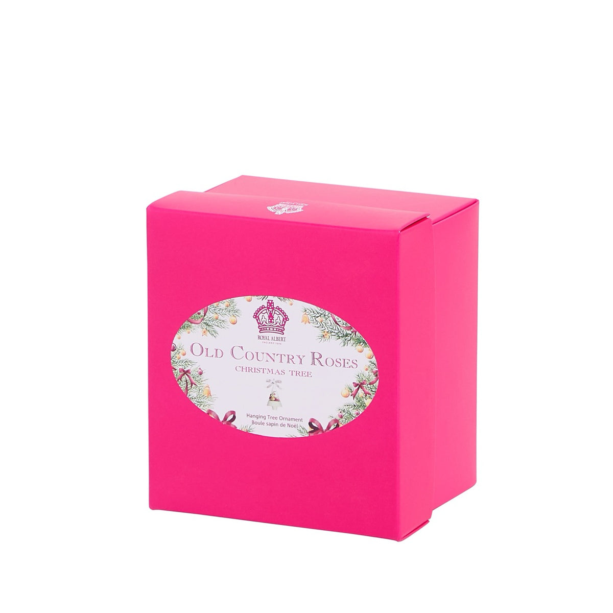 Crafting fine bone china tea ware since 1904, Royal Albert adds a unique touch of cheeky, feminine fun to all things quintessentially English. Embracing vintage touches and florals, particularly the English country garden variety, the brand’s range of dishware is made with the best materials and in the finest tradition. The Old Country Roses Christmas Hanging Ornament Tree is a charming fine bone china keepsake, decorated with signature florals, a fern green accent, and golden polka dots. Suspended from a branded white ribbon and presented in a pink Royal Albert gift box, it makes a thoughtful seasonal gift or collectible holiday treasure.