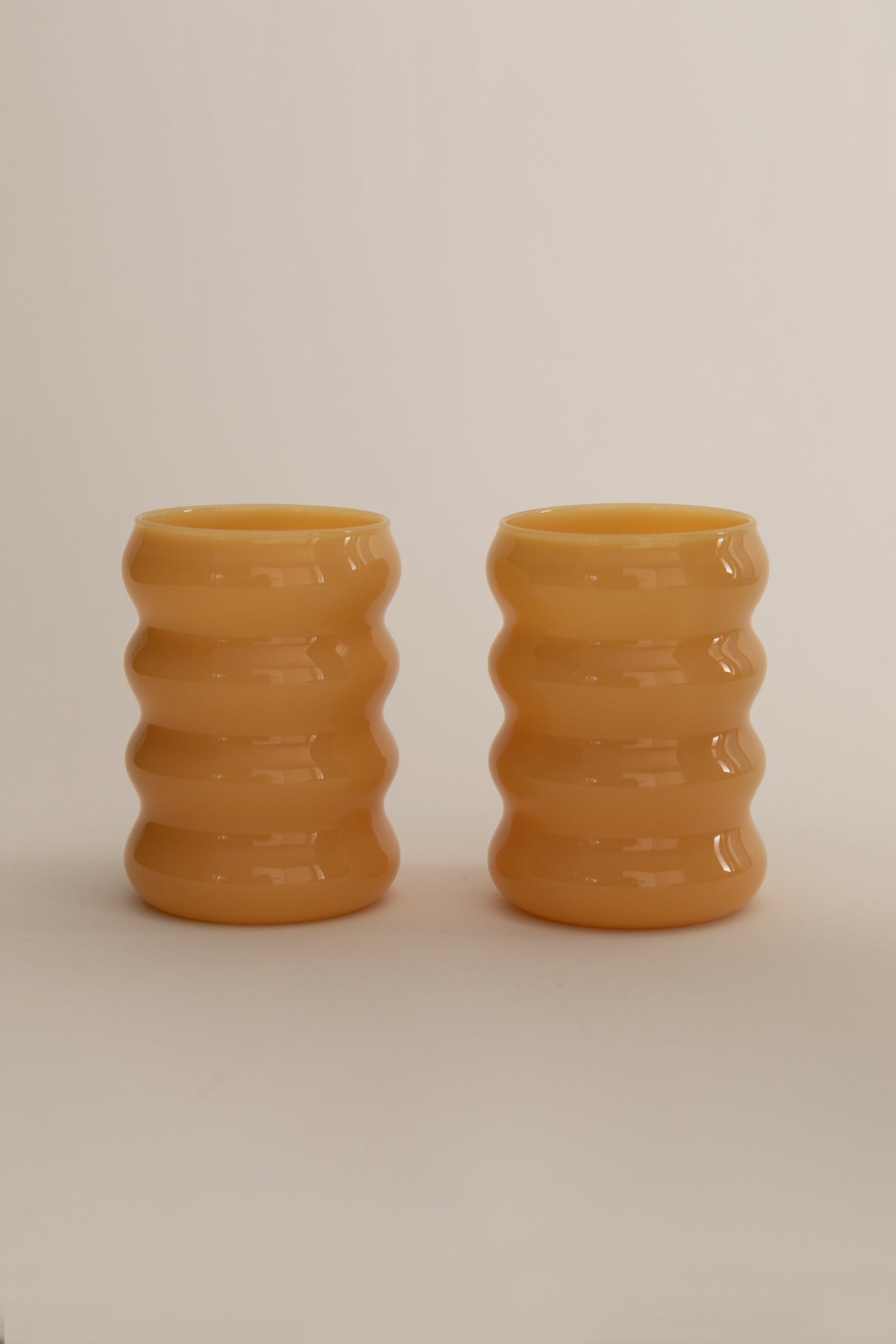 From her studio in New York City, French-American designer Sophie Lou Jacobsen explores the relationship between humans and objects by imbuing each of her unique glass pieces with elements of surprise and delight, creating a visual poetry around the rituals of our everyday. Crafted in opaque borosilicate glass, with carefully undulating and repeating curves, the Opaque Ripple Cup Set makes an eye-catching display but is also ideally suited to wine, water, or your favorite cocktail.