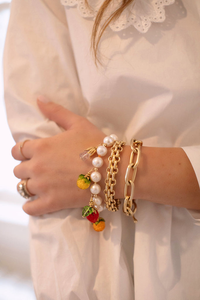 The mother-daughter duo behind Brinker + Eliza combine their experience in metalsmithing and fashion to create incredibly unique jewelry that feels custom-made. Employing pearls, shells, and earth’s most prized organic forms, these are pieces to be not just worn but treasured. With vintage glass beads and pearl, the Orchard Bracelet adds instant whimsy to your look.