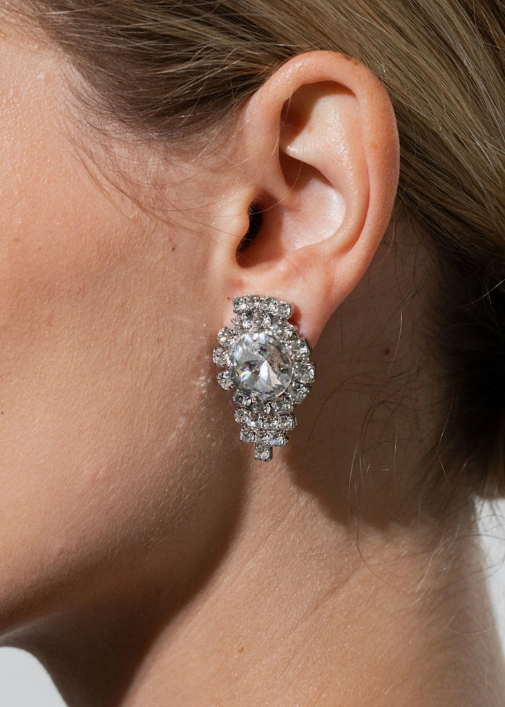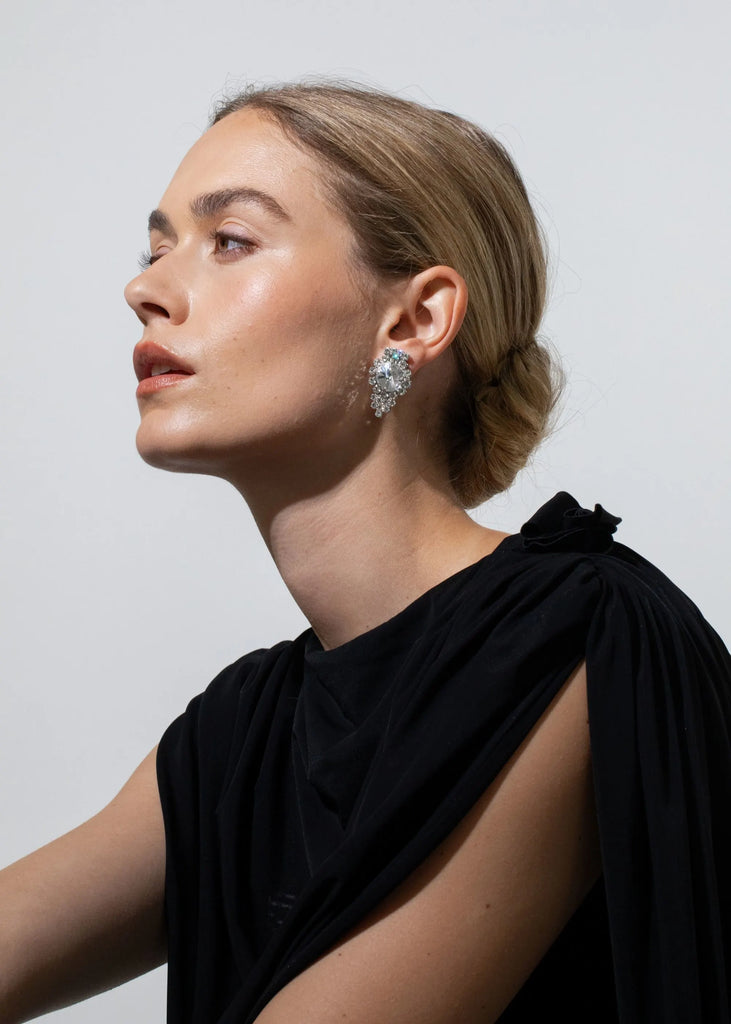 “Everything has a story to tell,” says Jennifer Behr, the founder of her namesake luxury hair accessory brand that has blossomed into one of New York City’s foremost ateliers for jewelry, as well as bridal. In every crystal, pearl, and ribbon, you’ll find the utmost quality and a sense of romance, as each piece reveals a modern interpretation of centuries-old regalia. The Oriana Earrings in Crystal pay homage to the architectural beauty of Art Deco icons like the Chrysler Building, blending geometry and glamour. Handcrafted in New York, the round-cut Austrian crystals are framed by smaller stones in a structured, radiant arrangement that captures timeless sophistication.