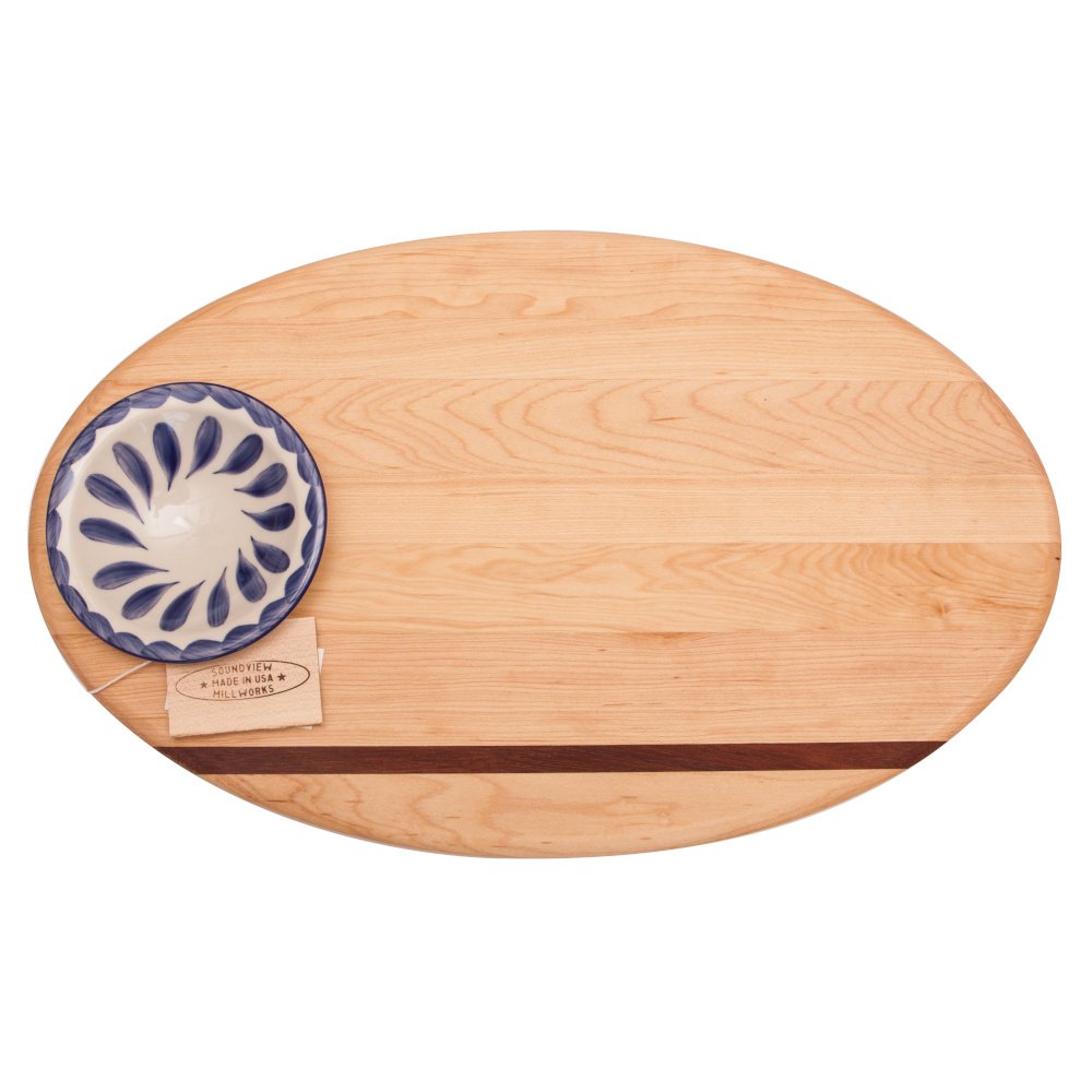 Evoking classic New England style, Soundview Millworks’ handcrafted boards pair solid maple and mahogany with thoughtful details inspired by the nautical world and beyond. Designed to elevate entertaining, each piece offers heirloom-quality craftsmanship with personalized options that make every gathering feel bespoke. The Oval Dip Board with Ceramic Bowl offers a refined presentation for artisanal breads, snacks, or shared bites—complete with a recessed center to cradle its ceramic dip bowl. Whether for relaxed gatherings or elegant affairs, it’s an essential for effortless hosting.