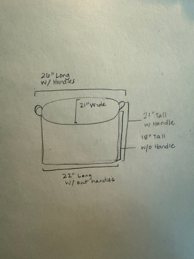 Approximately 22" L x 21" W x 18" T (26" L x 21" T with handles)