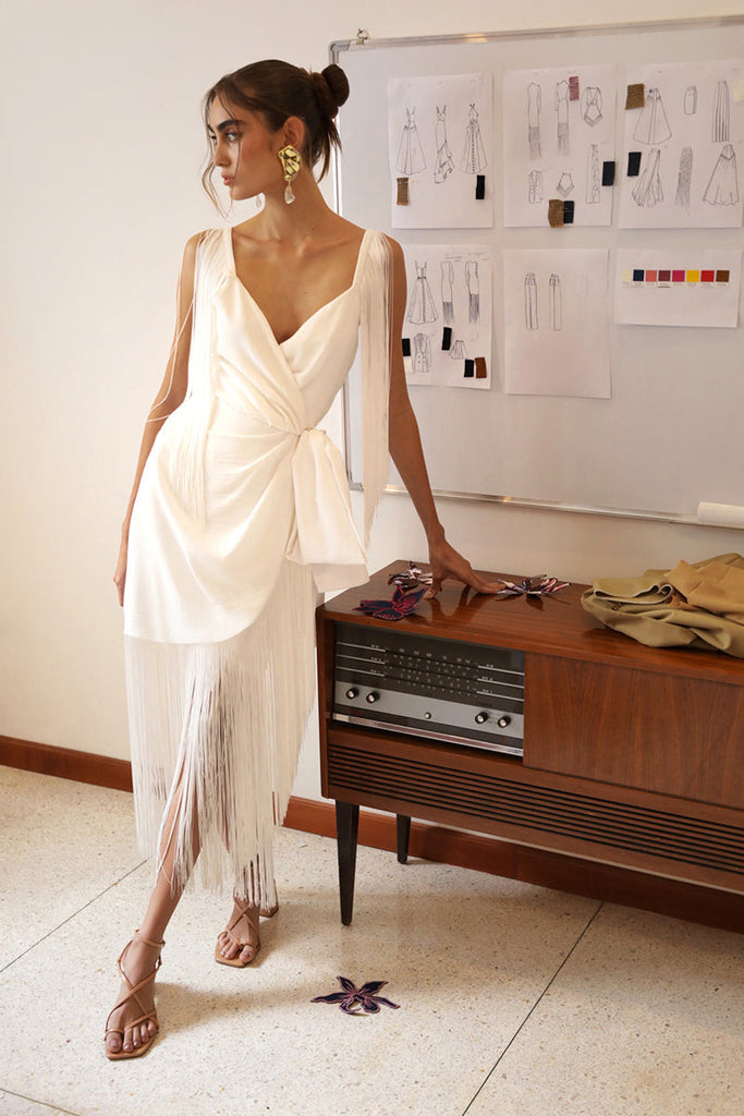 Founded by Daniela Panaro, No Pise La Grama, which translates to “don’t step on the grass,” is a Venezuelan fashion brand known for its feminine, timeless designs. As the name suggests, there’s a strong connection to nature through the elevated yet laid-back aesthetic inspired by travel and the art of traditional craftsmanship. The Parchita Dress in White is a vision of fresh sophistication. With its clean lines, airy fabric, and refined details, this versatile silhouette is an effortless choice for everything from daytime celebrations to elegant evening occasions.