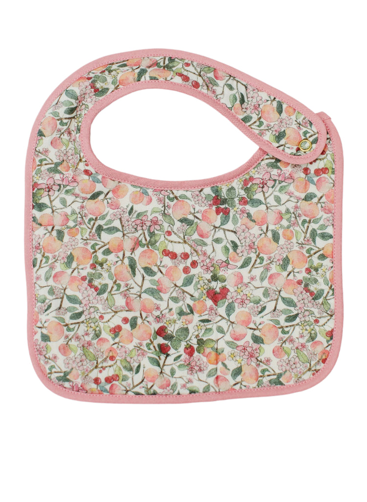 Created to be timeless, sustainable and whimsical, Timo & Violet creates luxury bedding and bath linens for your littlest ones. Looking outward from the very beginning, they develop soft fabrics that are safe for both babies’ skin and the earth, decorating them with artwork by women from around the globe. The Peach Blossom Bib brings a polished touch to everyday moments. Crafted from 100% organic cotton with a printed muslin front and soft terry backing, it’s as functional as it is beautiful—ideal for mealtimes, bottle feedings, and extra “drooly” days. Finished with adjustable snap closures for a comfortable fit.