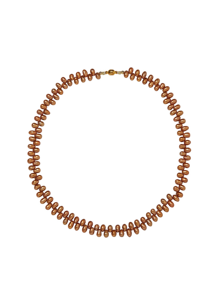 Freshwater pearls in bronze hue. 18K gold-plated magnetic clasp. Each pearl varies slightly in color and shape, making every necklace unique. Handmade in New York City.