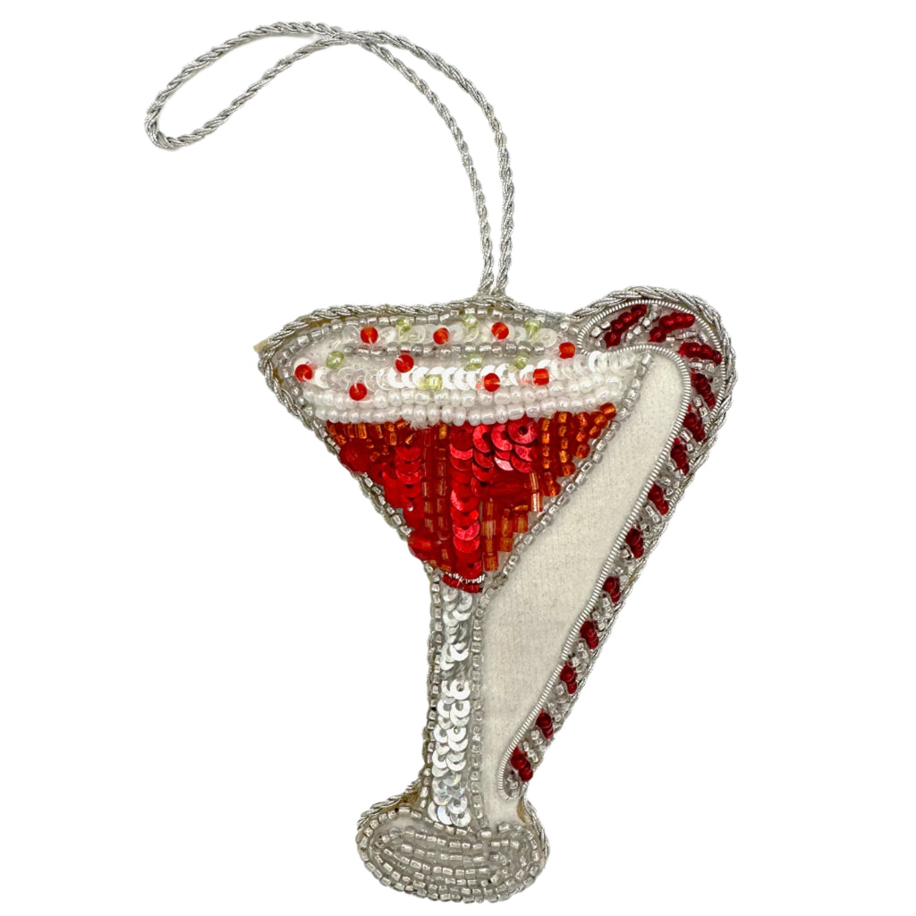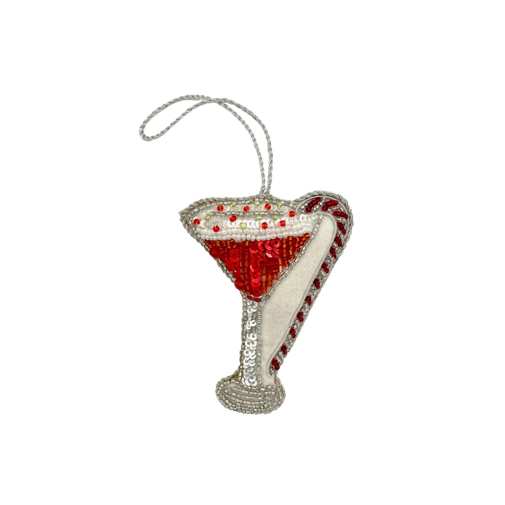 Founded in 2012, Henry Handwork brings joy to the everyday with handmade textiles for the home. Placing tradition and quality at the forefront, the brand resurrects the fading craft of hand-embroidery and needlework, embracing the heritage of finely-wrought European linens. The Peppermint Martini Ornament brings a festive twist to classic cocktail cheer. Hand-beaded with a candy cane garnish and sugared rim, this playful piece adds sparkle and seasonal spirit to the holiday tree.